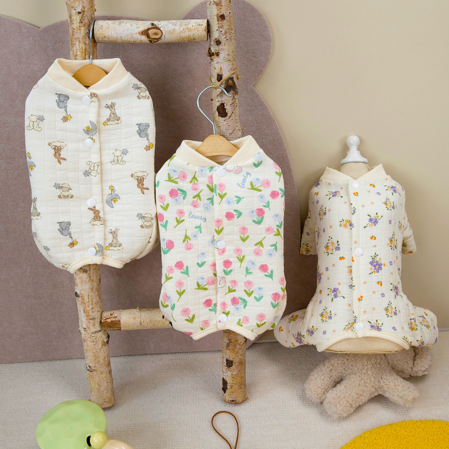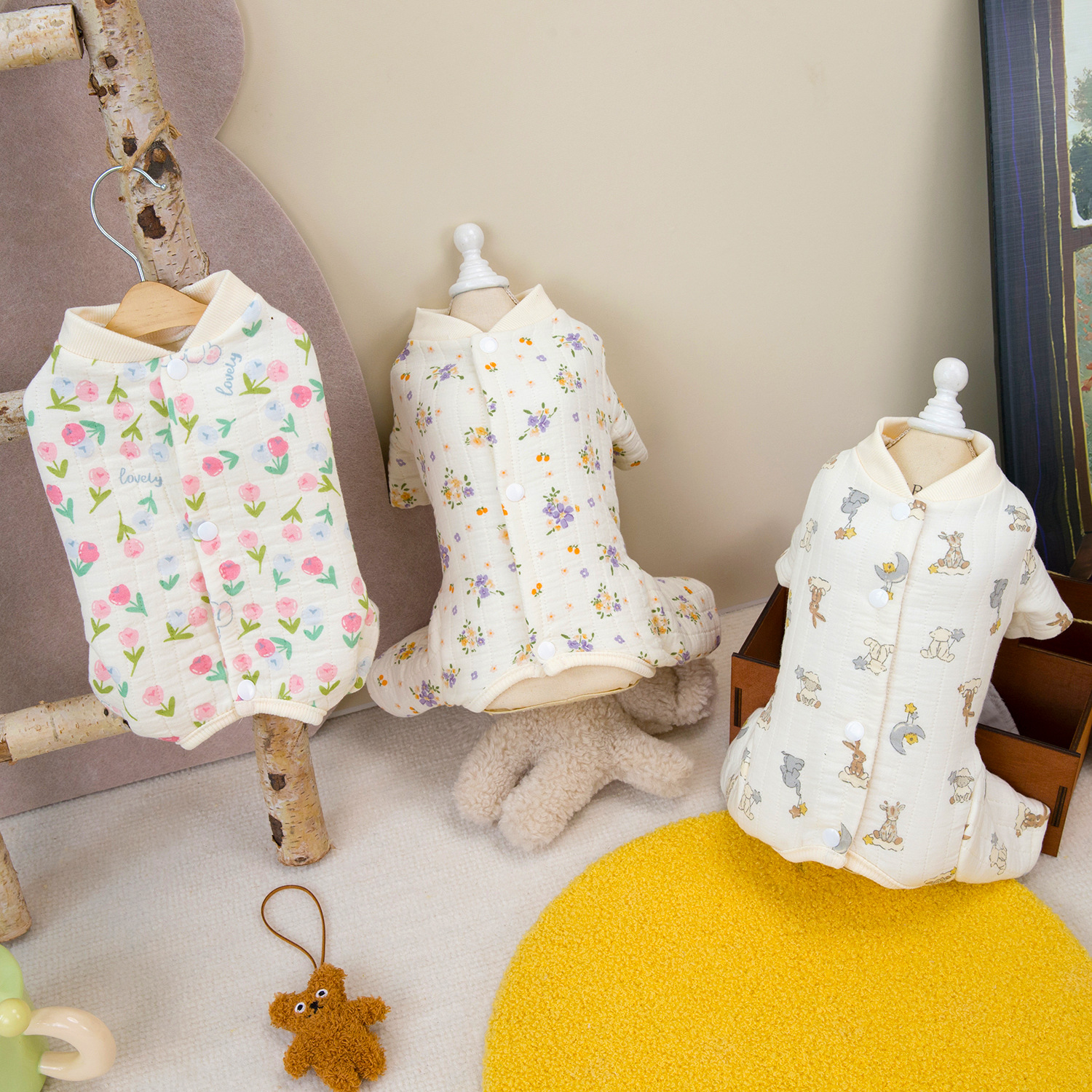 개 옷 애완 동물 의류 작은 개 고양이는 가을과 겨울에 따뜻하고 편안한 24 더블면 거즈 백 배꼽 세트 입을 수 있습니다.스토어 가기