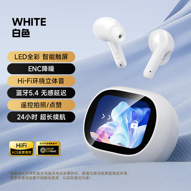 2024新款触控屏无线蓝牙耳机跨境入耳式长续航不漏音降噪防水通用