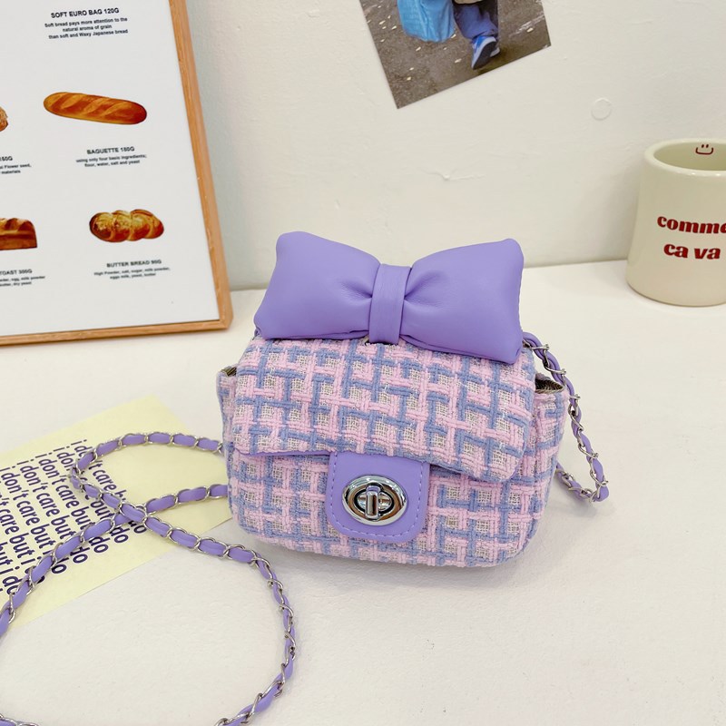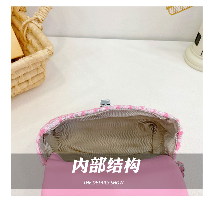 작은 가방 여성의 2024 여름 새로운 도착 활 스타일 조커 작은 광장 가방 작은 샤넬 스타일 울 체인 크로스 바디 백