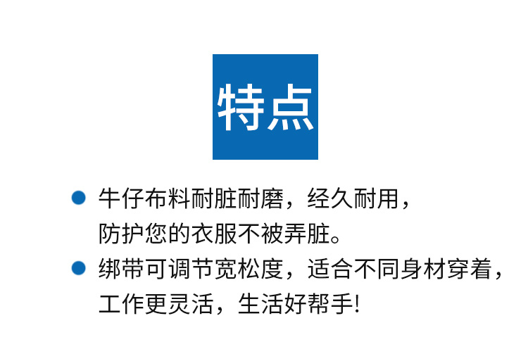• 데님 앞치마 85cm + 신축성 있는 소매 34cm 2세트