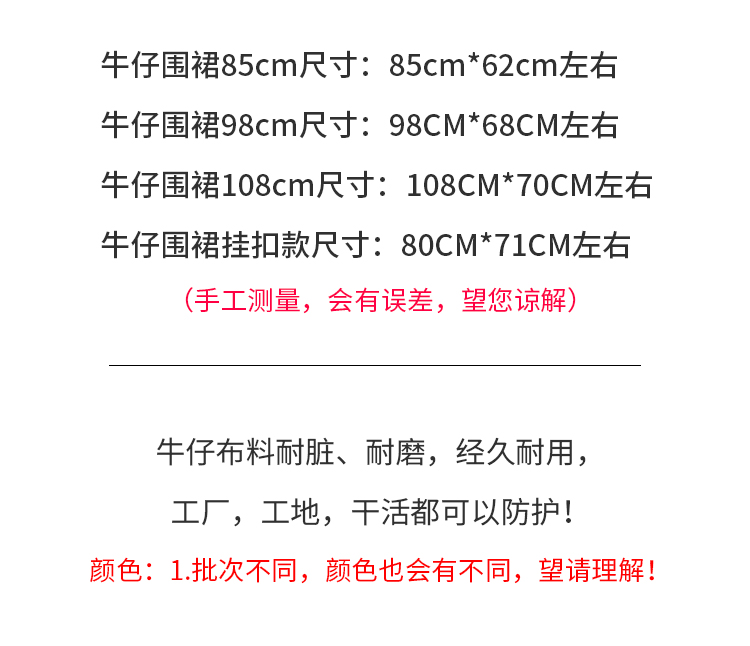 용접기 데님 앞치마 남성과 여성 공장 노동 보호 방지 캔버스 내마모성 작업 주방 카페 베이킹 앞치마스토어 가기