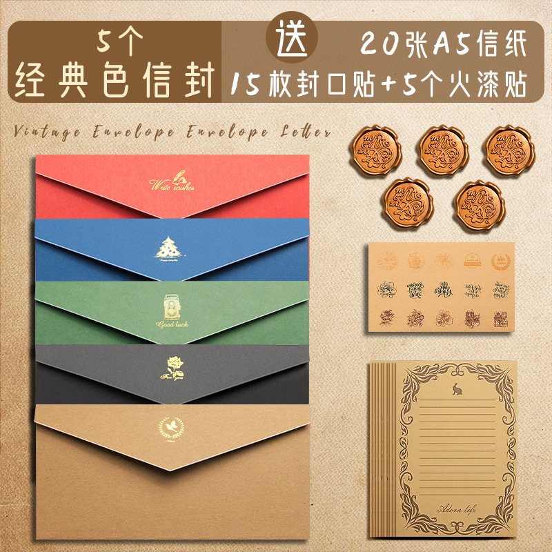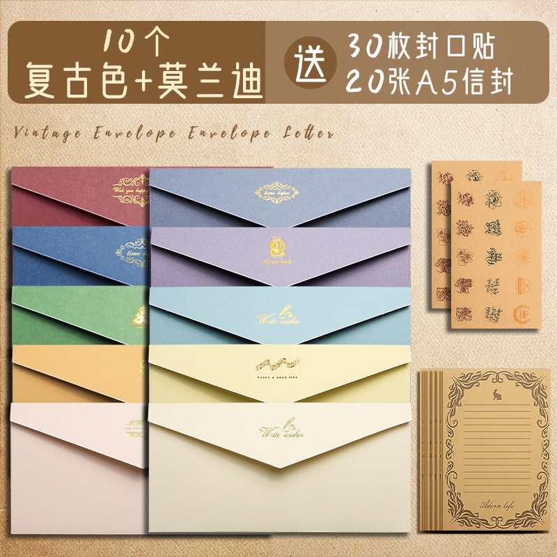 • [클래식 컬러 + 레트로 컬러] 10개 무료 밀봉 스티커 30개 + A5 편지지 20장