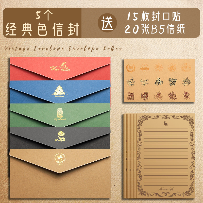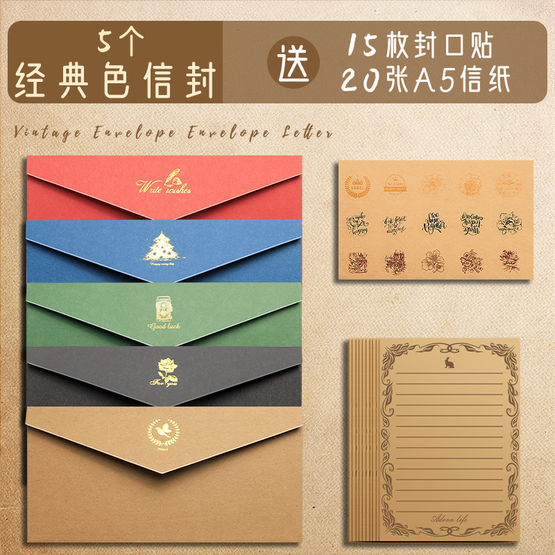 크래프트 종이 봉투 편지 종이 세트 빈티지 하이 엔드 편지 종이 및 봉투 가방 손으로 쓴 편지 생일 카드 선물스토어 가기