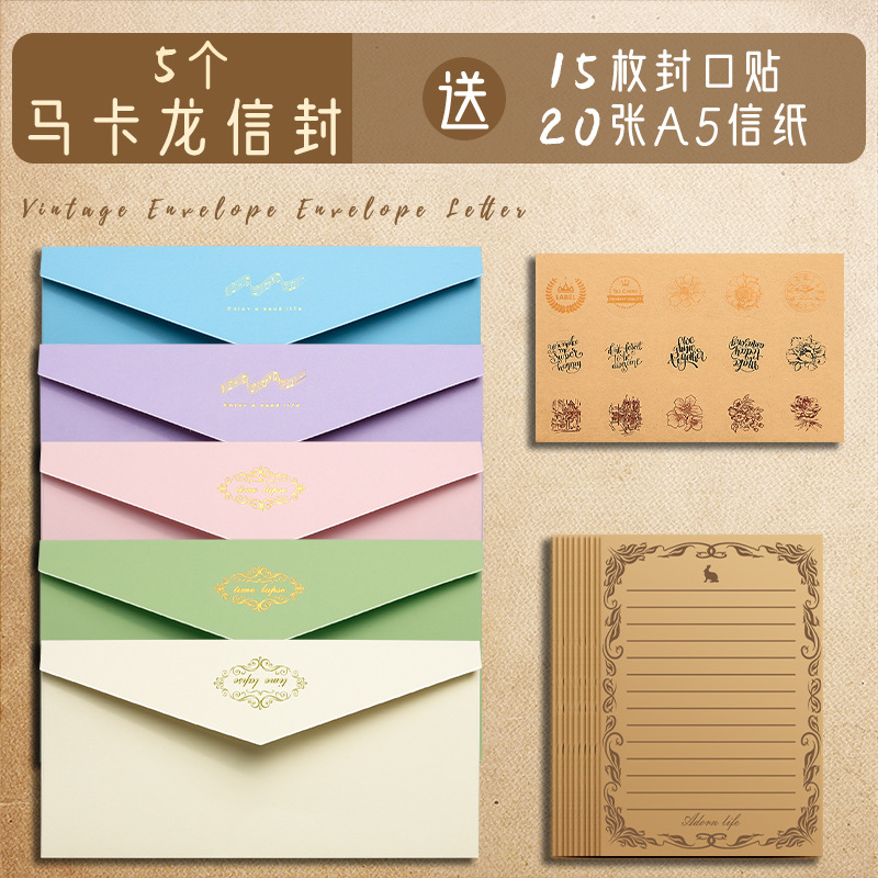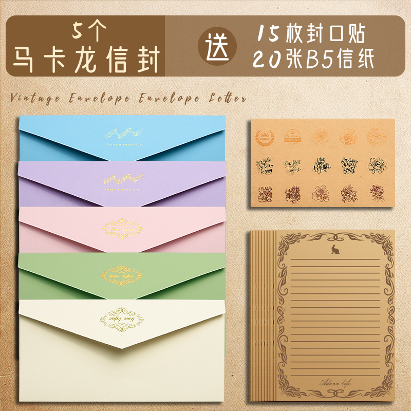 • [마카롱 5개] 밀봉스티커*15+B5 편지지*20