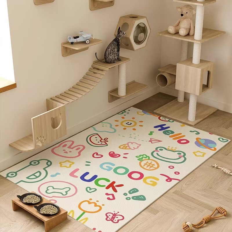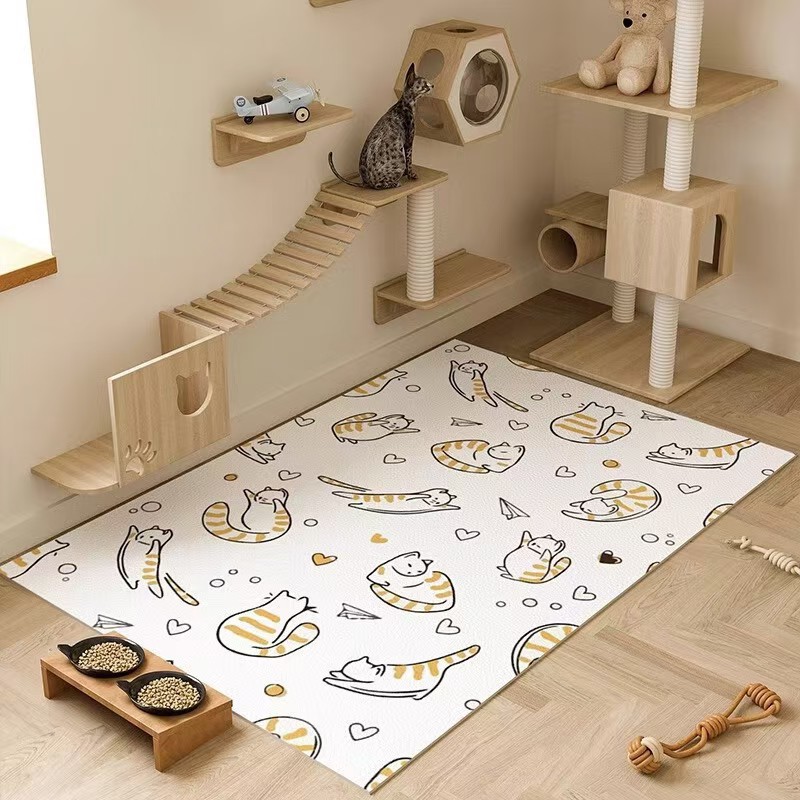 만화 스타일 더러운 저항 고양이 배치 개 방수 소변 방지 비 슬립 특수 바닥 매트 가죽 깨끗한 애완 동물 바닥 매트