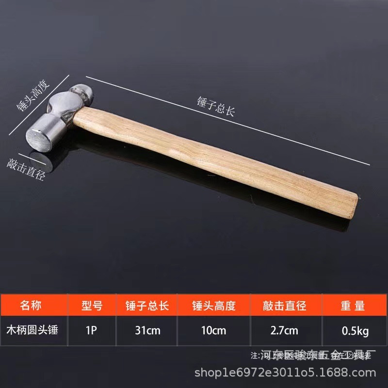 • 나무 손잡이가 달린 둥근 머리 망치 0.5p