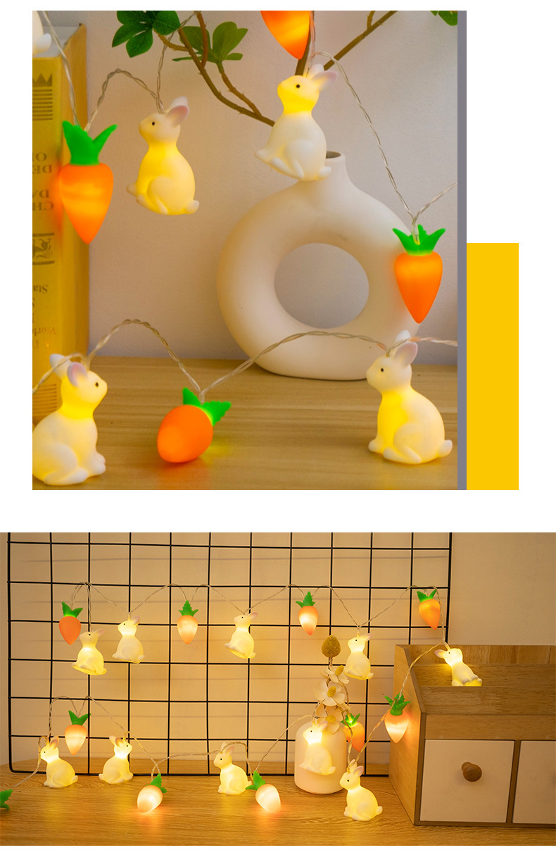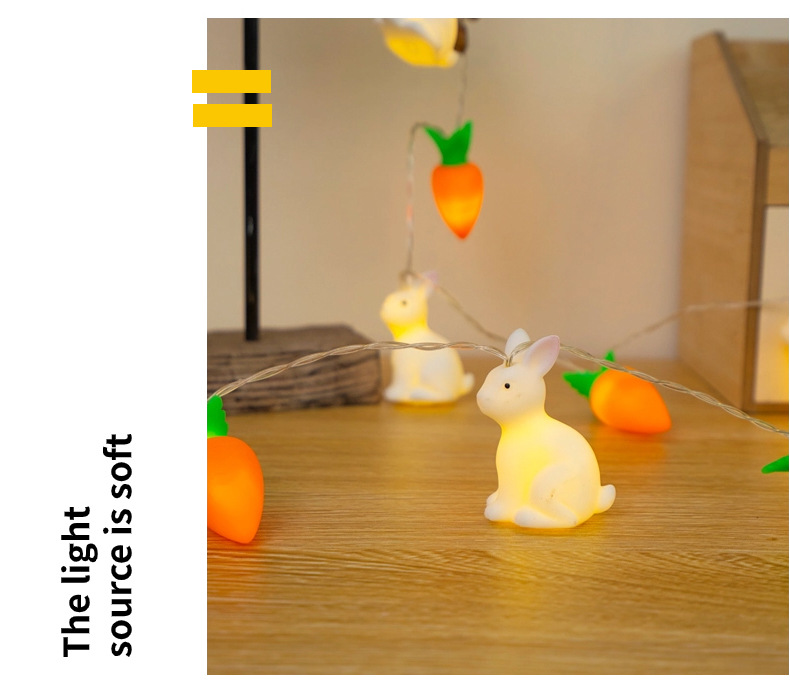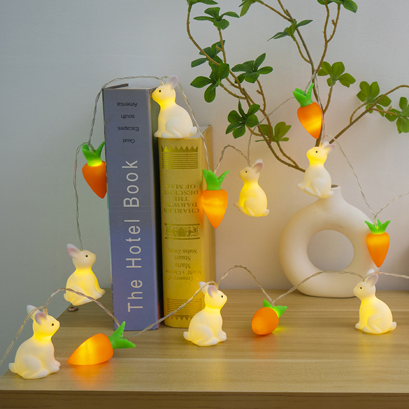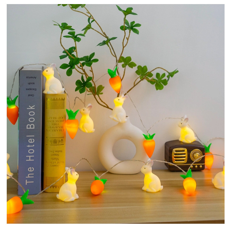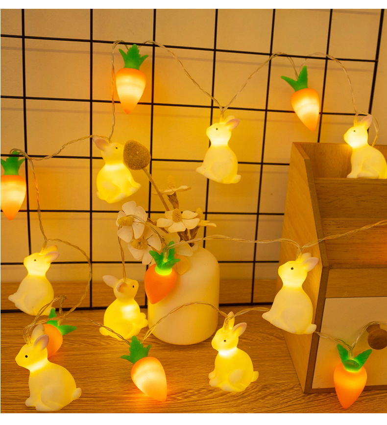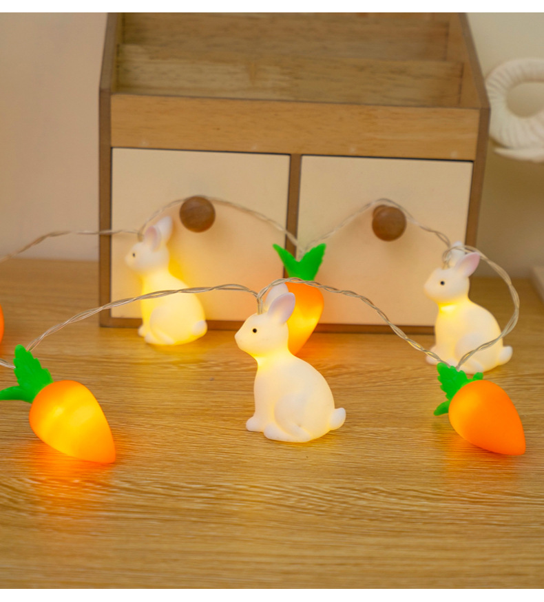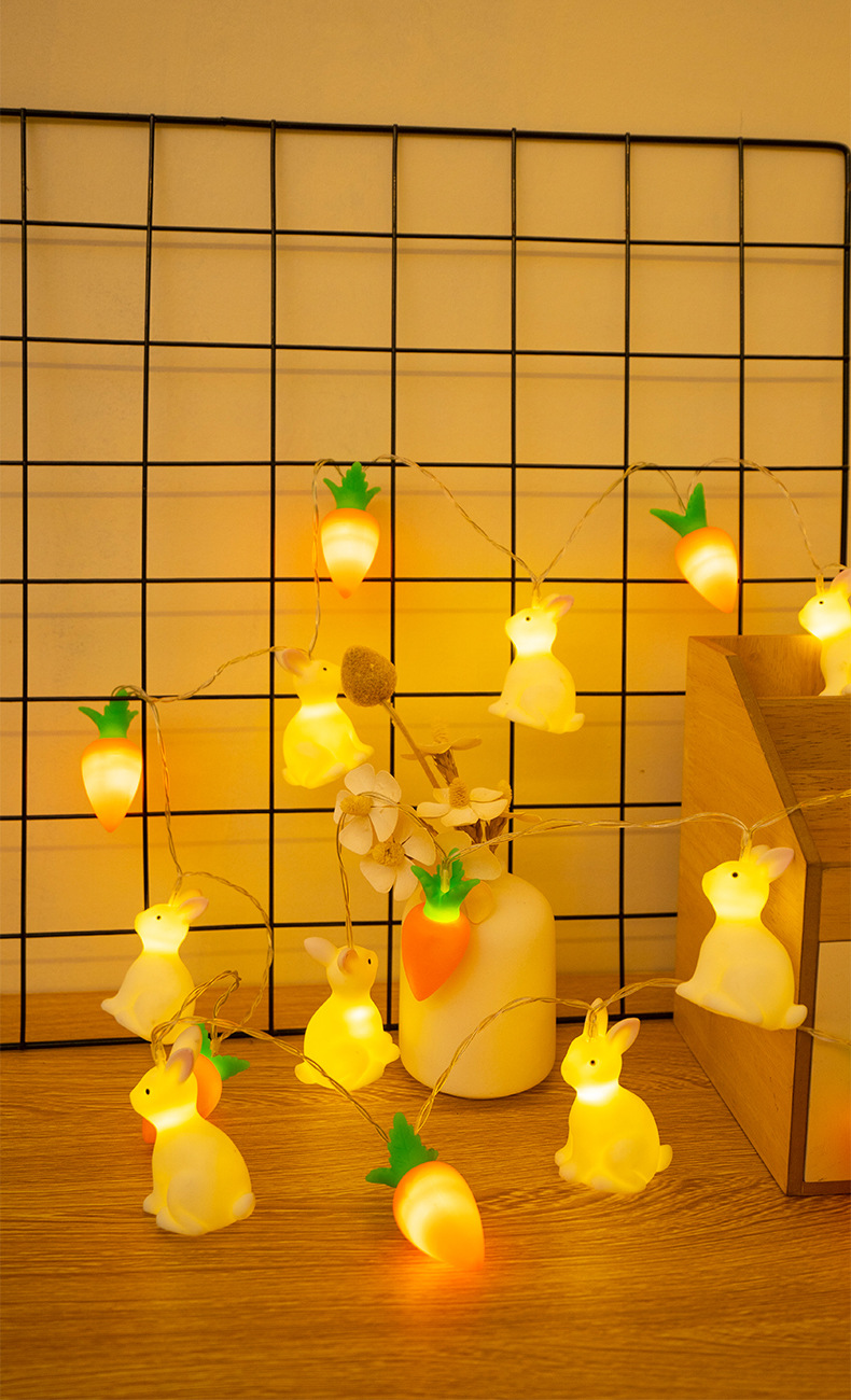 비닐 부활절 토끼 당근 LED 빛 문자열 어린이 장난감 빛 장면 레이아웃 장식 작은 색 빛