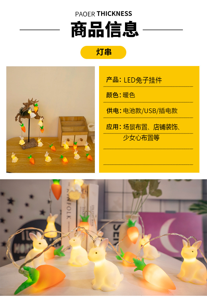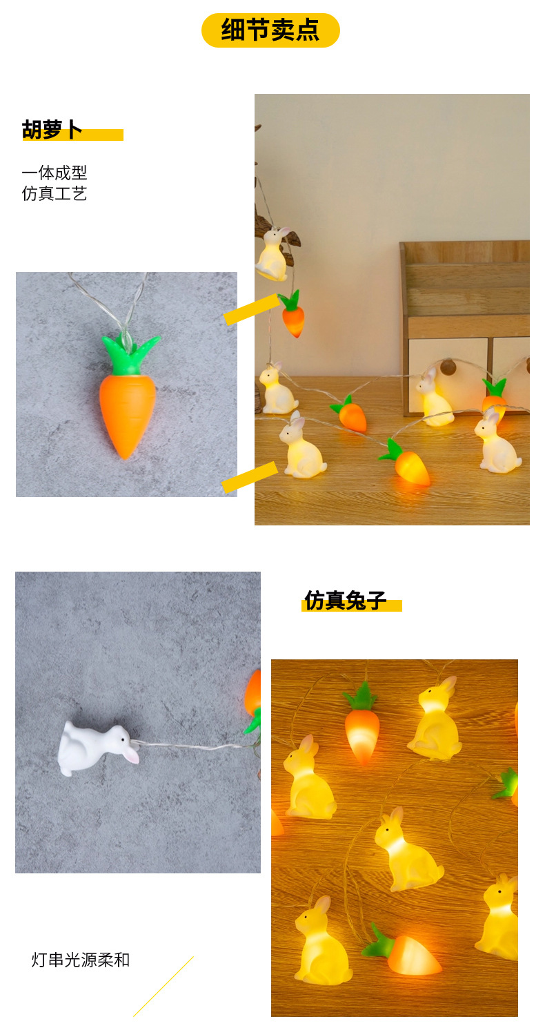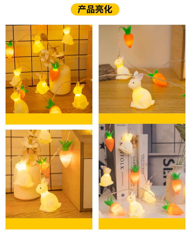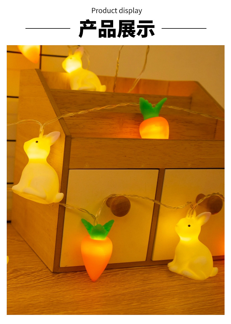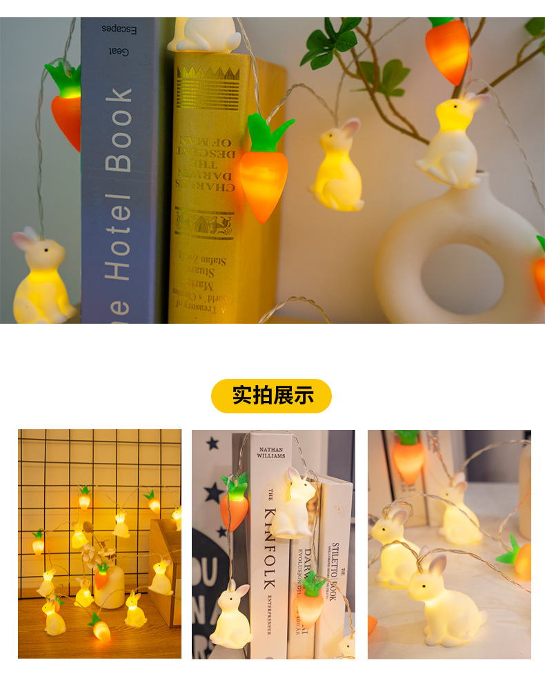 비닐 부활절 토끼 당근 LED 빛 문자열 어린이 장난감 빛 장면 레이아웃 장식 작은 색 빛