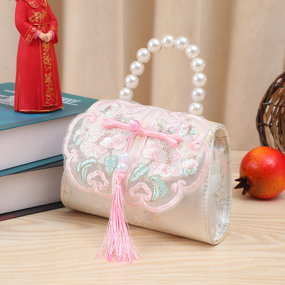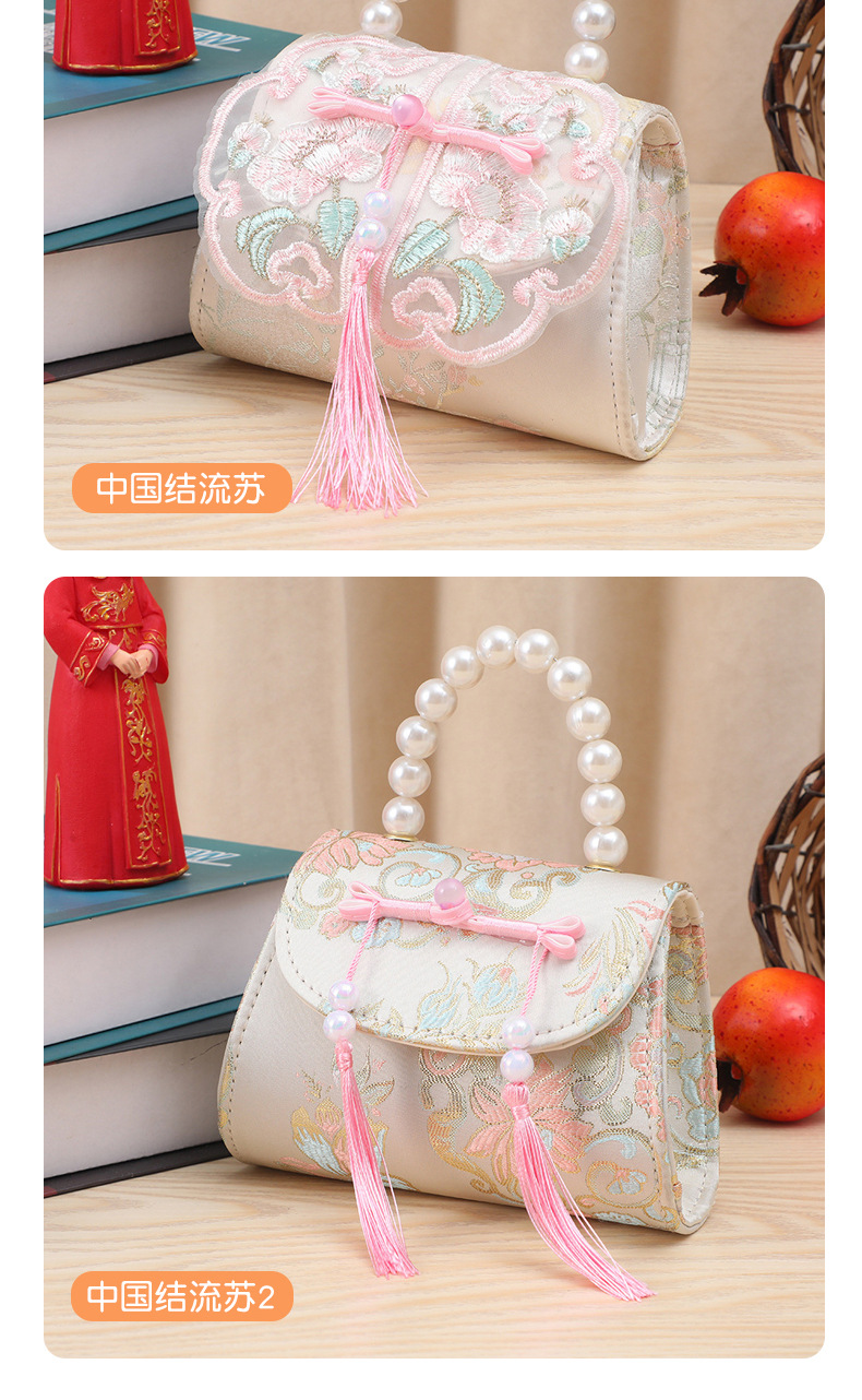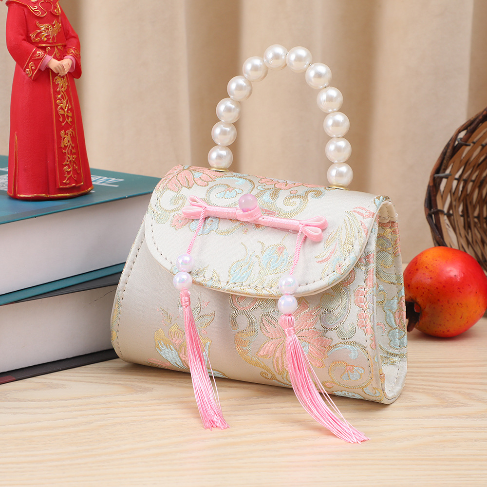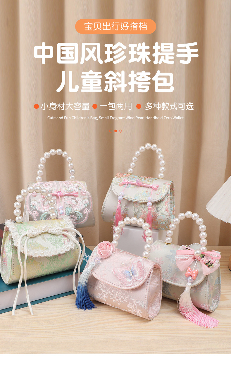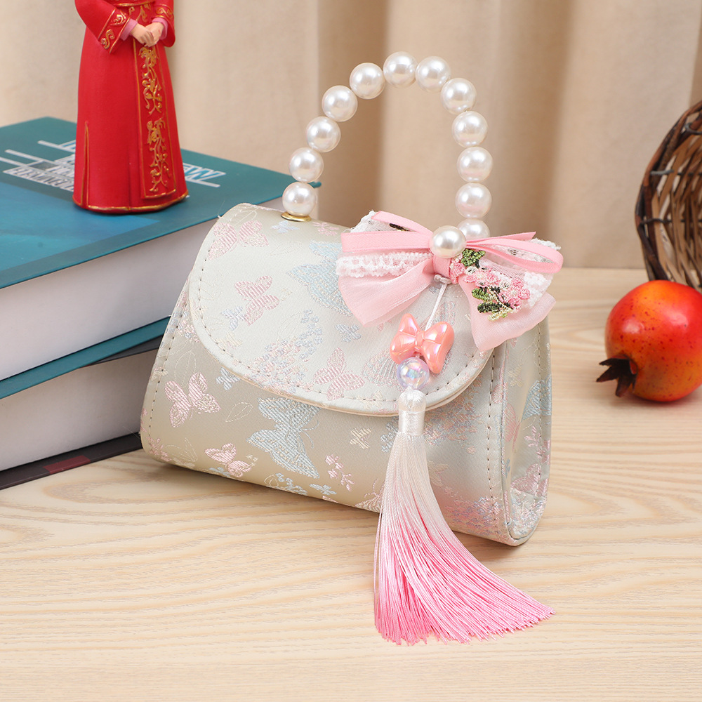 어린이 가방, 중국풍 리본과 태슬 장식, 여아용 숄더백, 공주님 진주 핸드백, 동전 지갑, 맞춤형 어린이 미니 가방