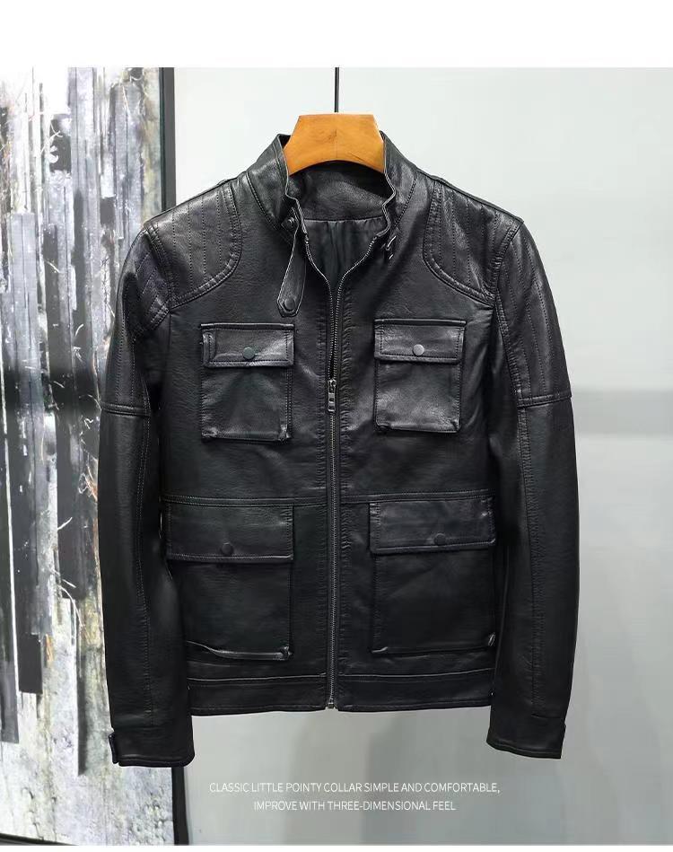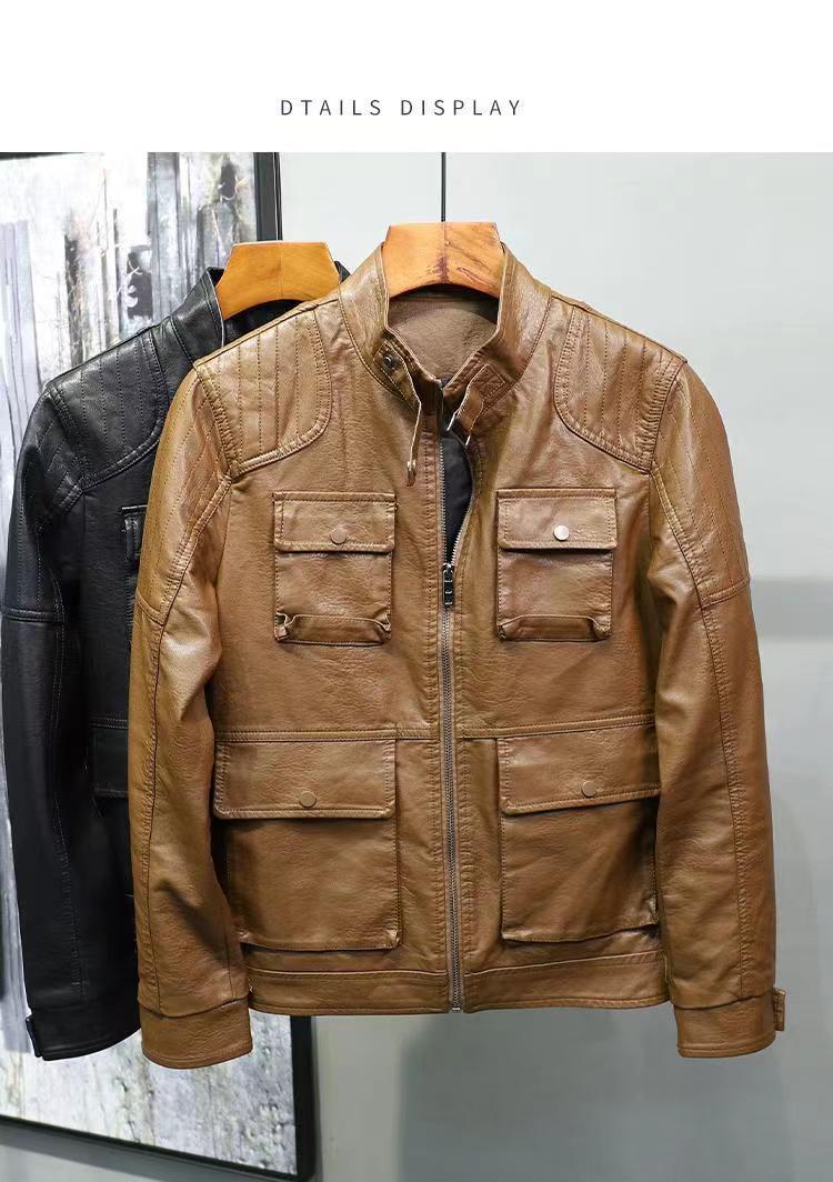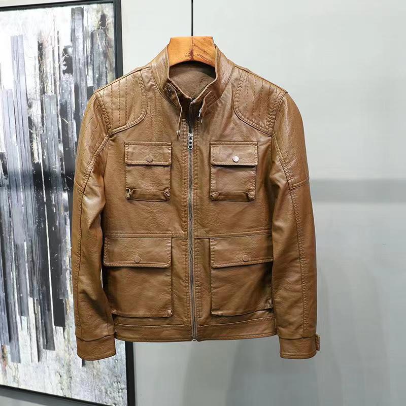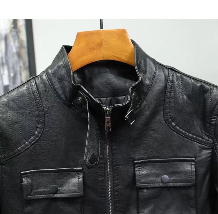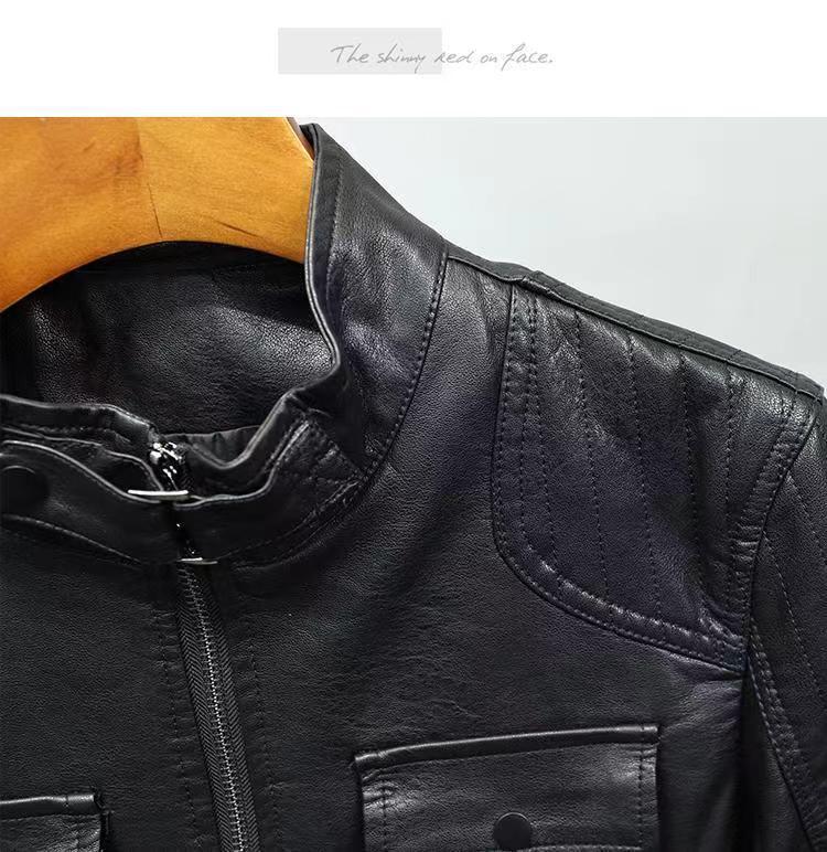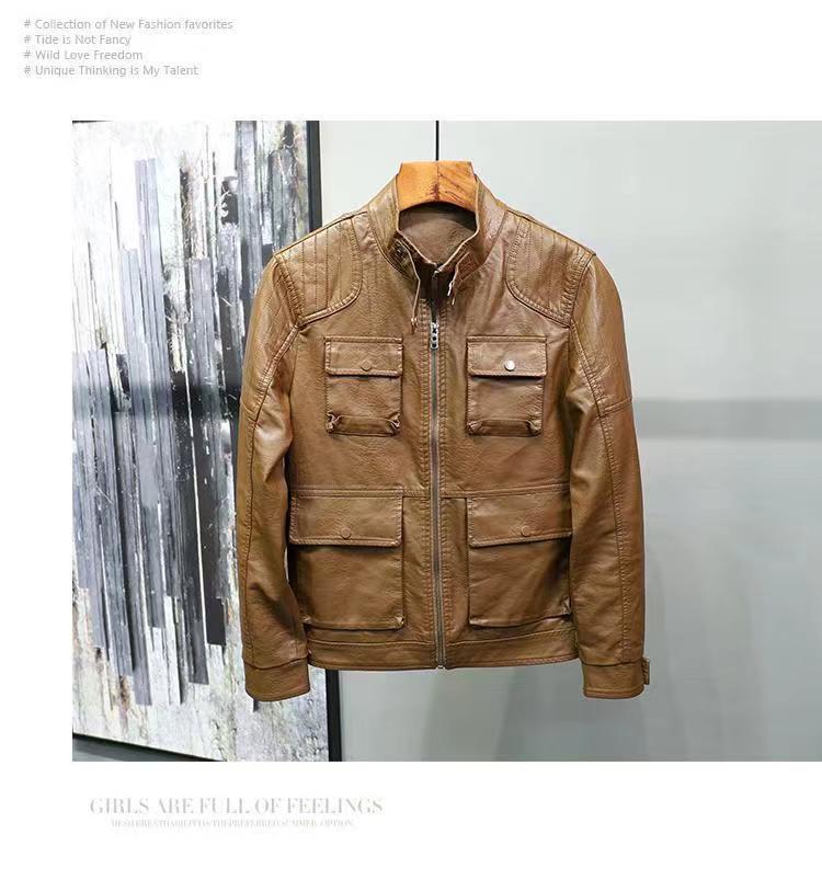 트렌디 한 재킷 남성 가죽 자켓 단색 PU2024 봄 새로운 캐주얼 올 매치 청소년 인기 슬림 핏 슬리밍스토어 가기