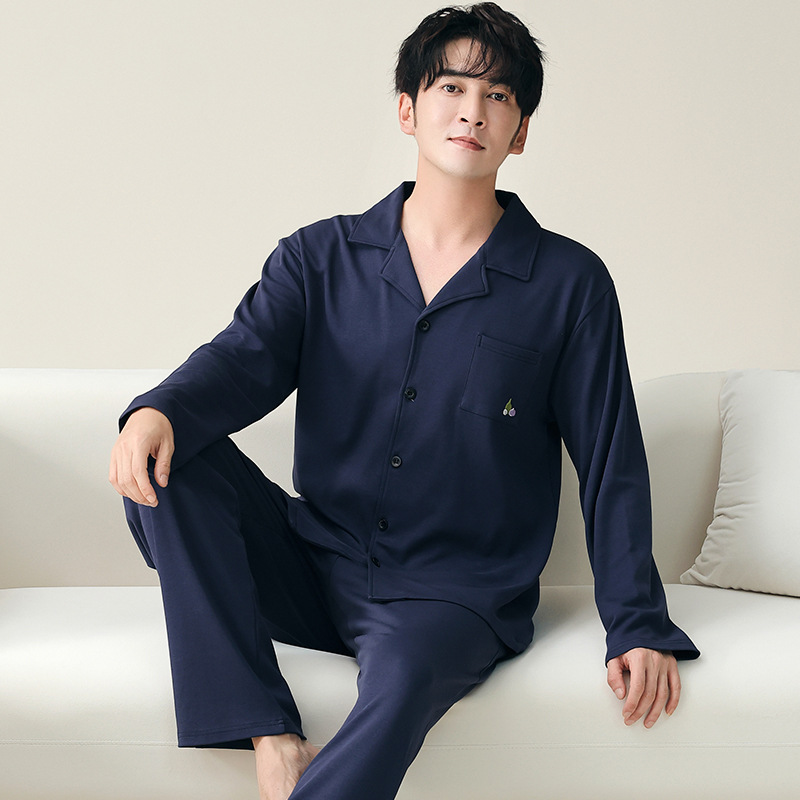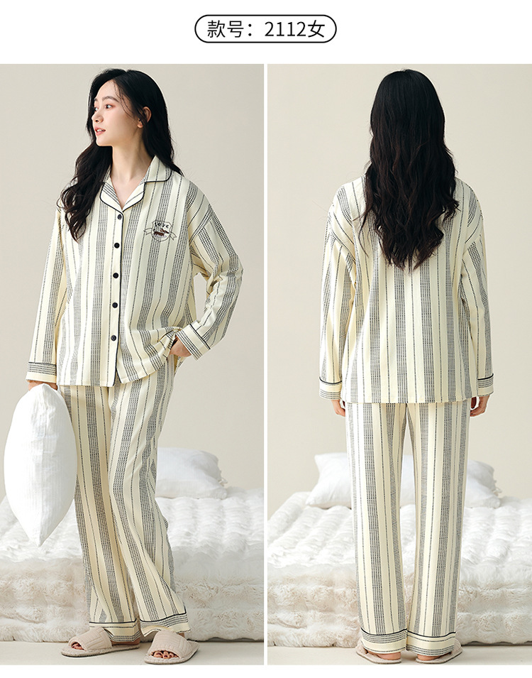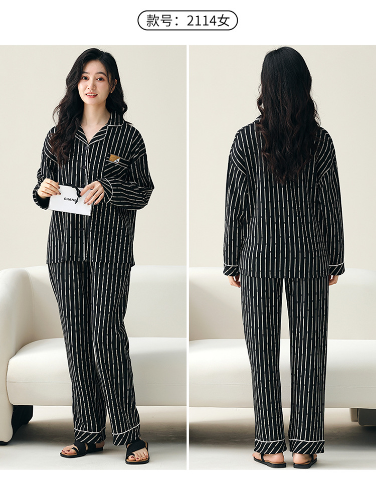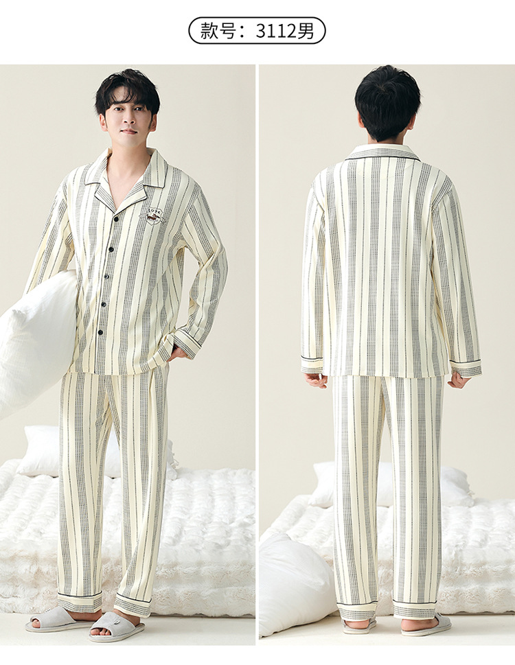 쿨 코튼 파자마 코튼 긴팔 남성 봄과 가을 여성의 새로운 고급 항균 방지 진드기 여름 클래스 홈 의류 세트스토어 가기