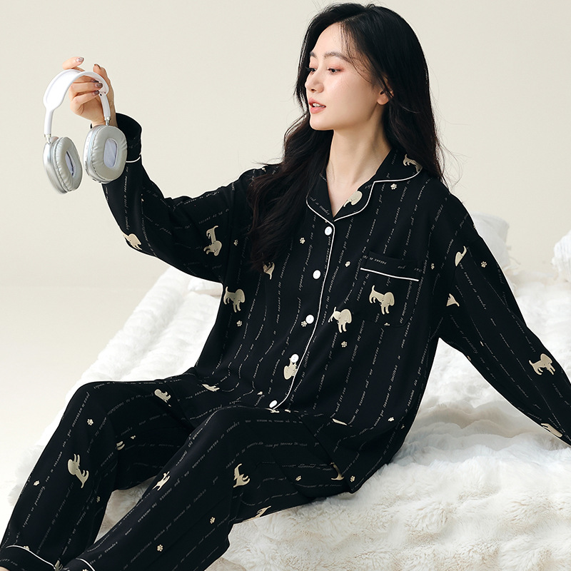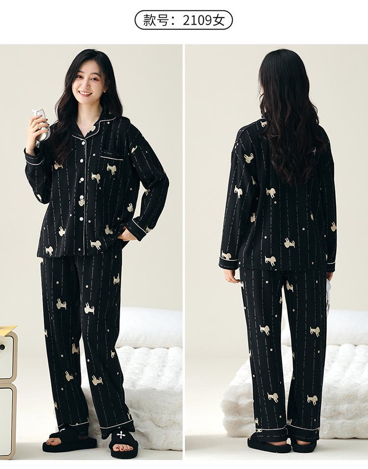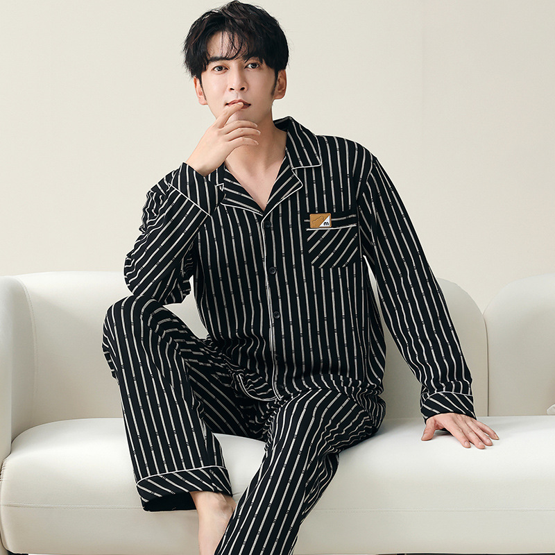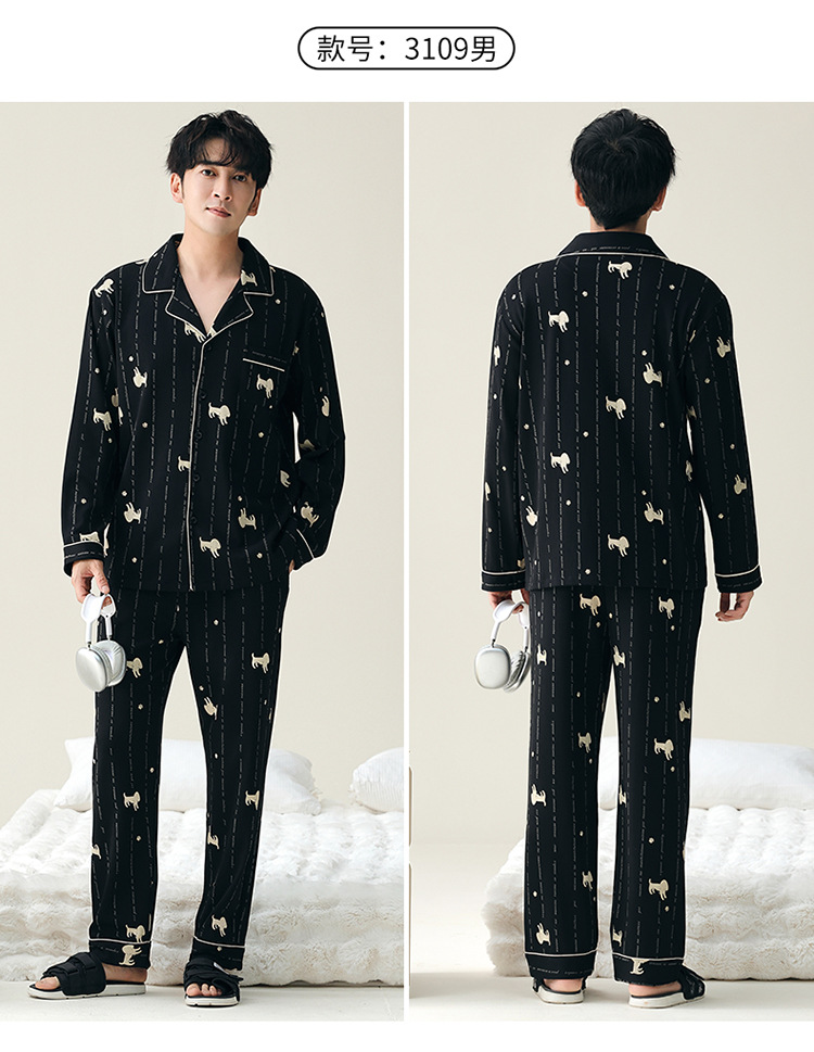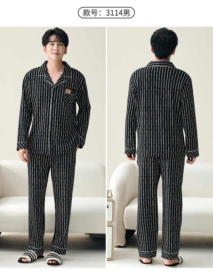 쿨 코튼 파자마 코튼 긴팔 남성 봄과 가을 여성의 새로운 고급 항균 방지 진드기 여름 클래스 홈 의류 세트스토어 가기