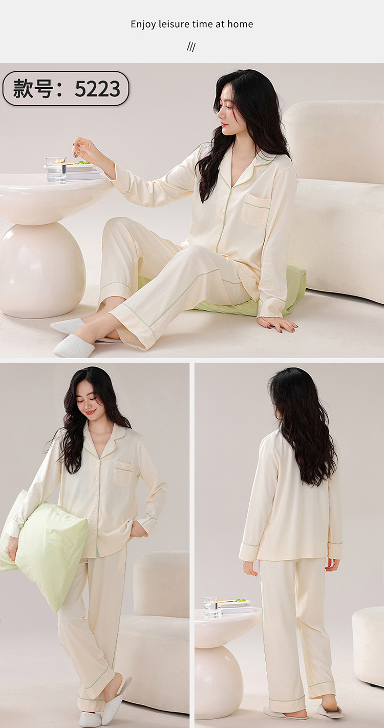 여성 잠옷 면 가을과 겨울 새로운 긴 소매 간단한 카디건 단색 캐주얼 플러스 사이즈 면 홈 의류 여성 세트