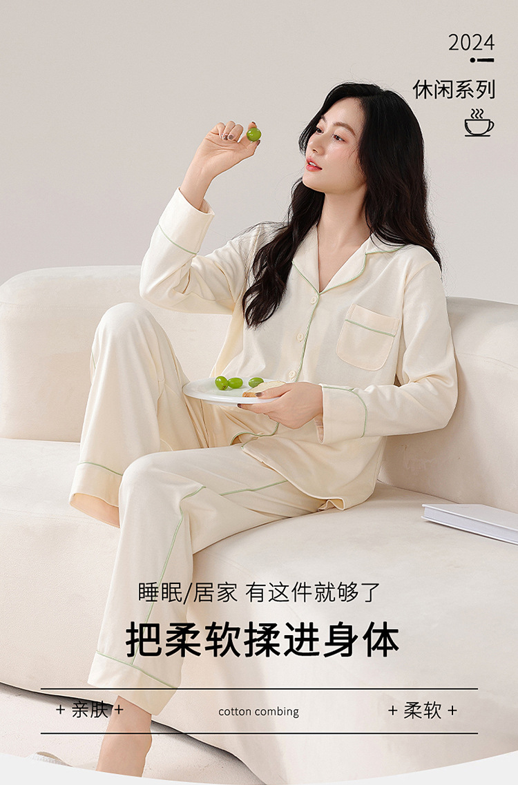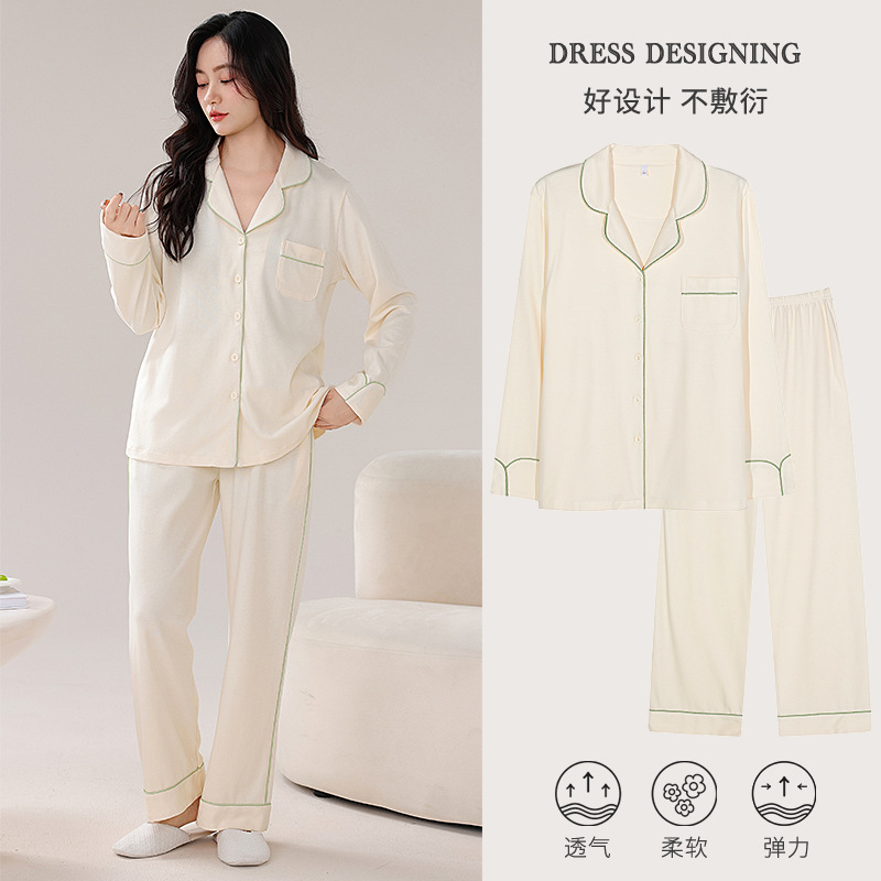 여성 잠옷 면 가을과 겨울 새로운 긴 소매 간단한 카디건 단색 캐주얼 플러스 사이즈 면 홈 의류 여성 세트스토어 가기