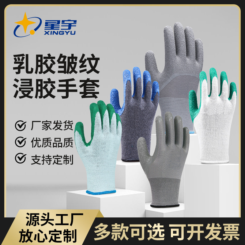 맞춤형 노동 보호 장갑 라텍스 주름 내마모성 미끄럼 방지 폴리에스터 면 통기성 운반 고무 건설 작업 장갑스토어 가기