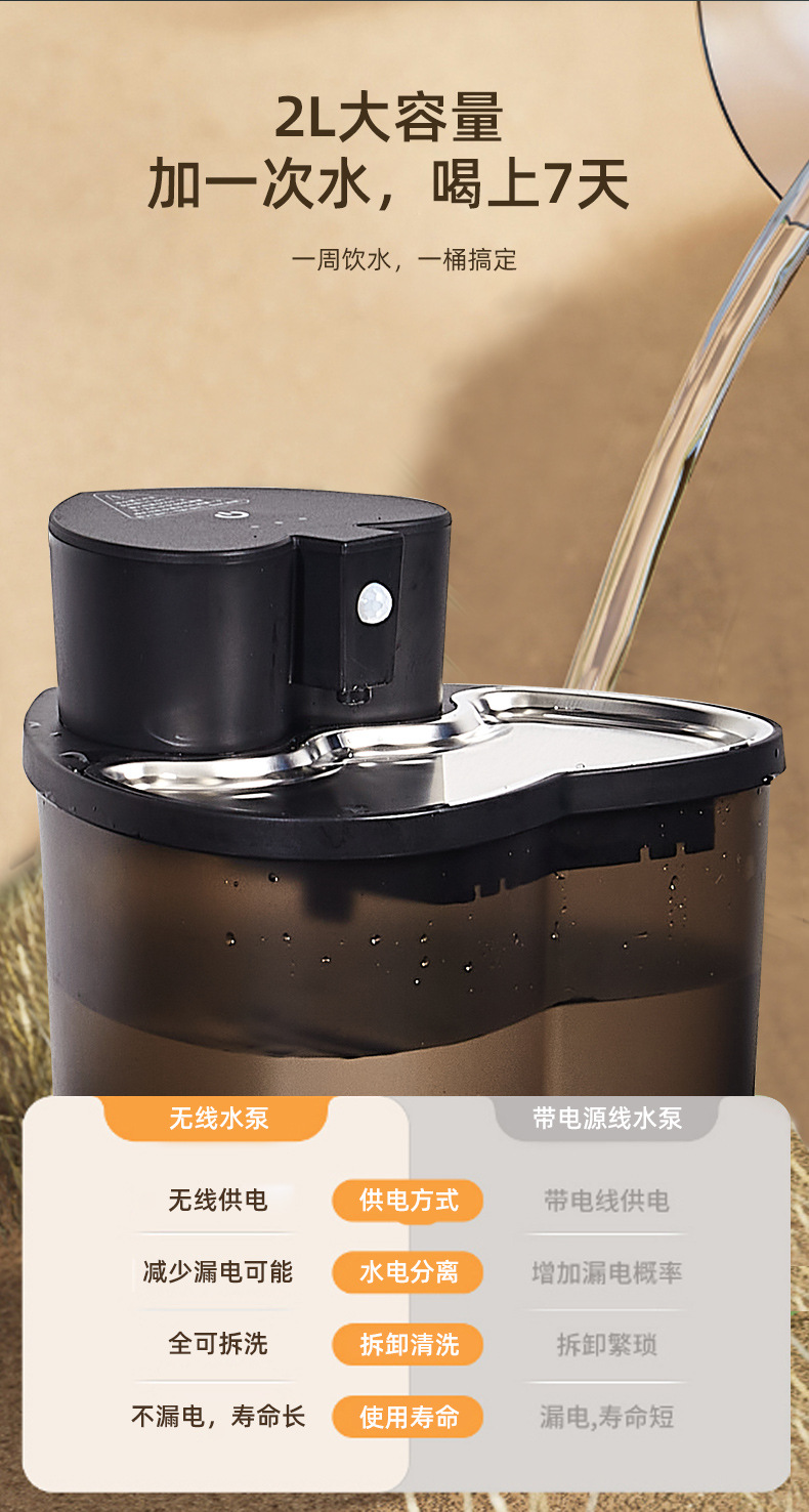 2L 무선 유도 애완 동물 물 공급 기계 지능형 스테인레스 스틸 고양이 물 디스펜서 마시는 물 주기 흐름