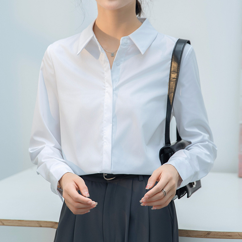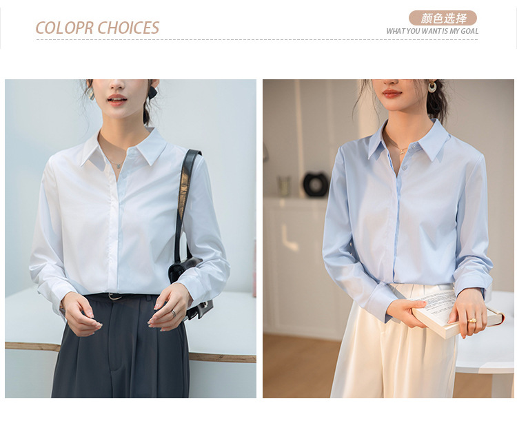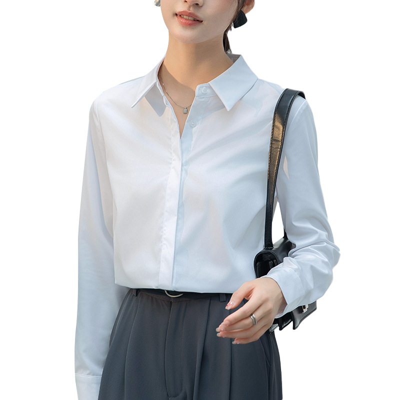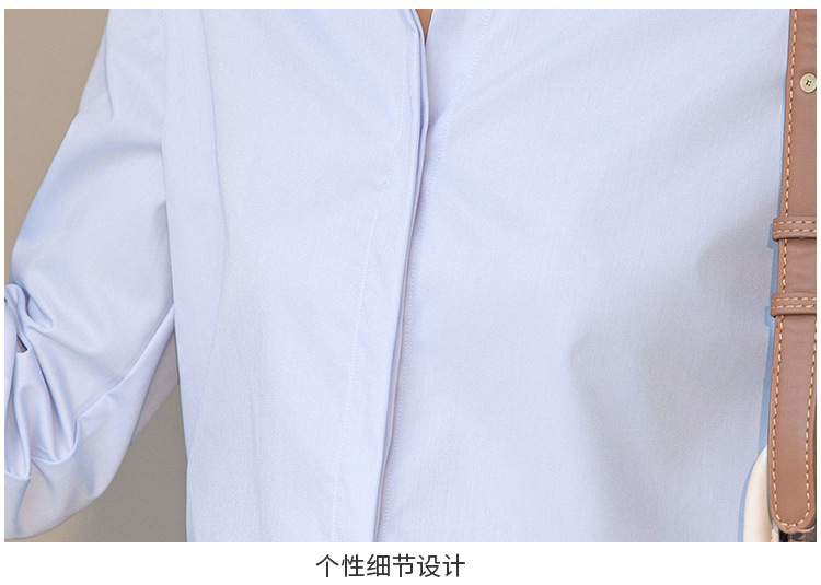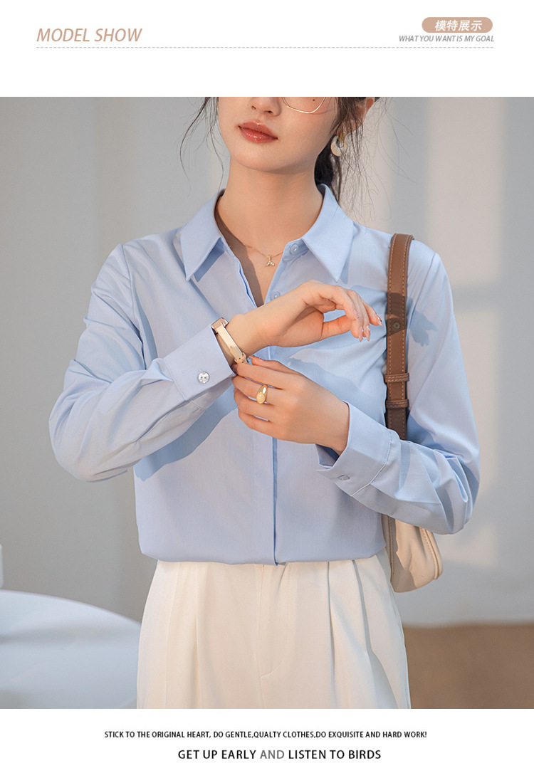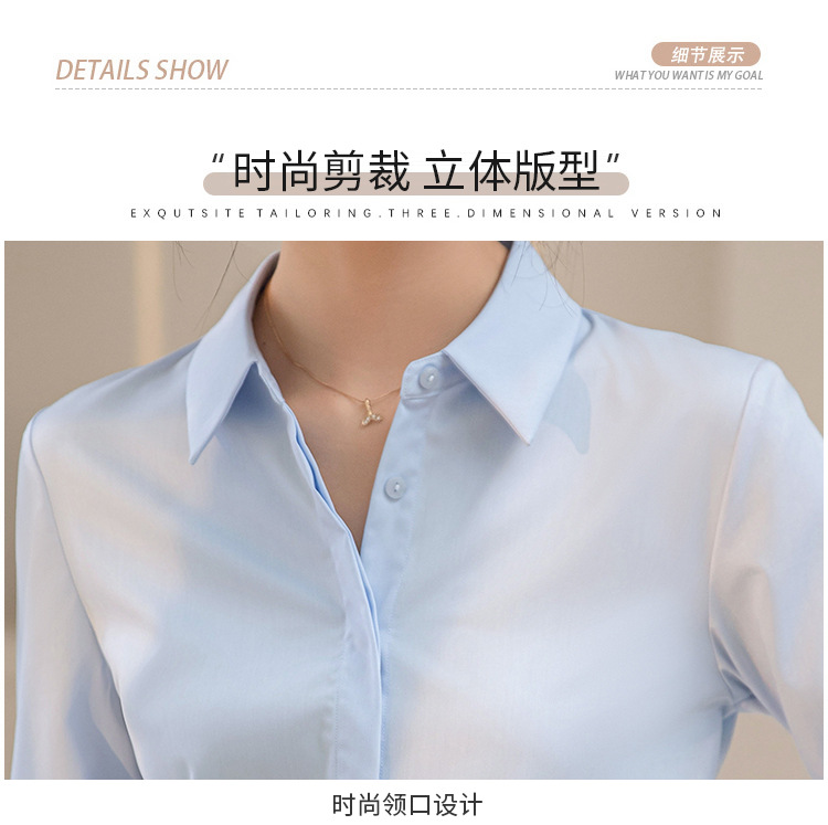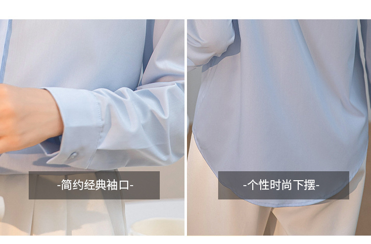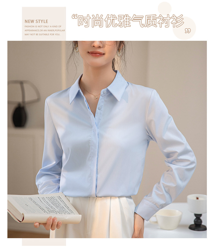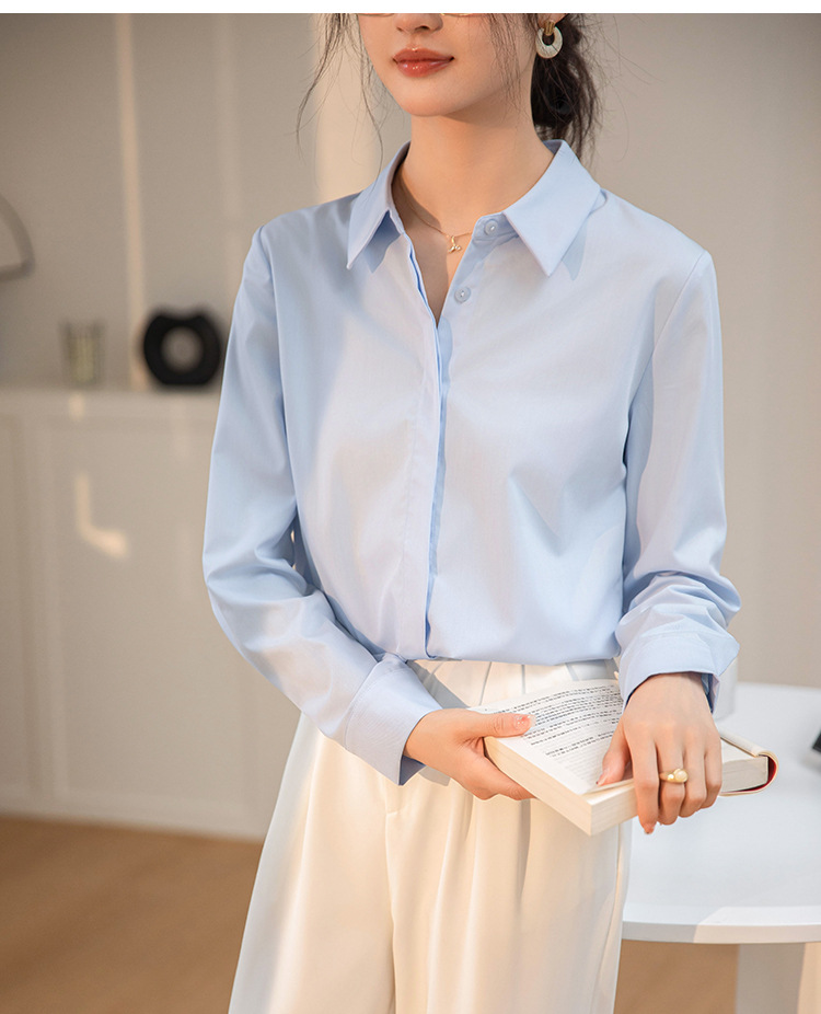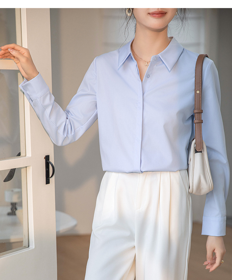 2024 리얼 샷 새로운 라이트 블루 셔츠 긴 소매 가을 다크 플래켓 POLO 칼라 모달 통근 기질 탑스토어 가기