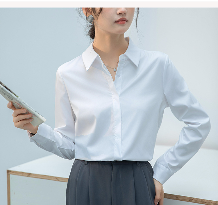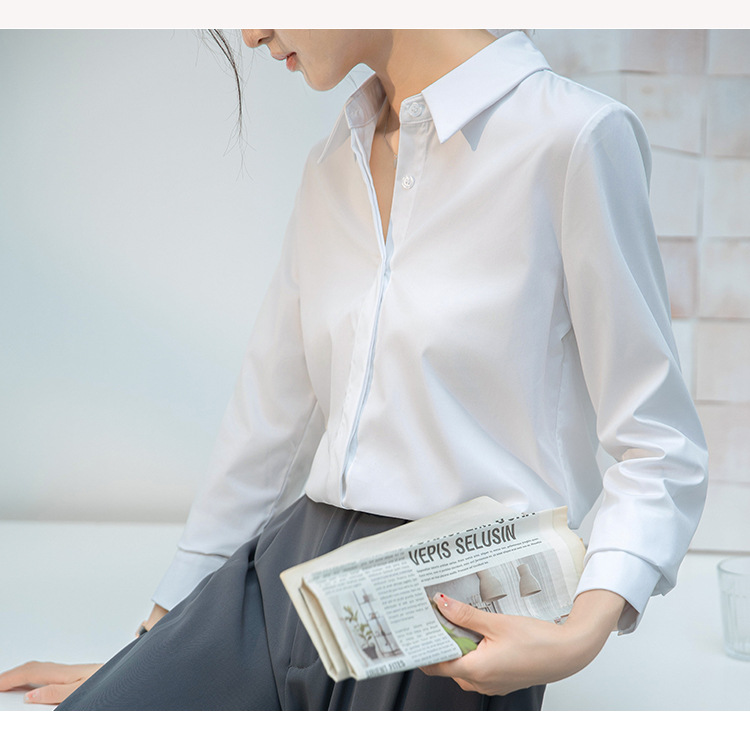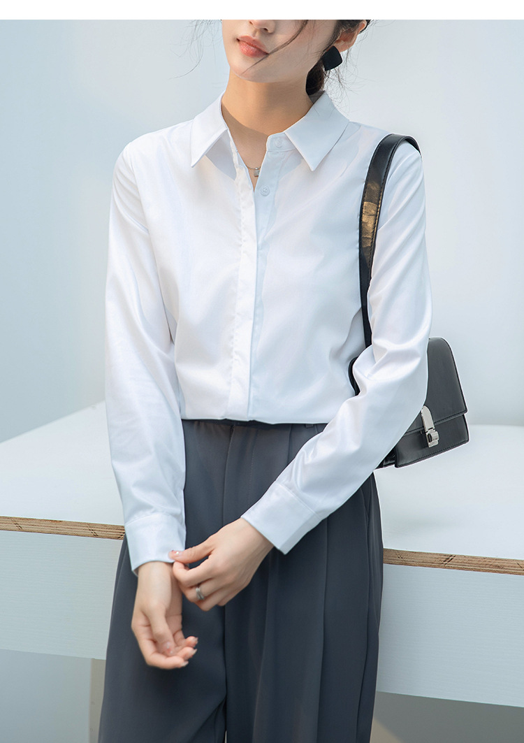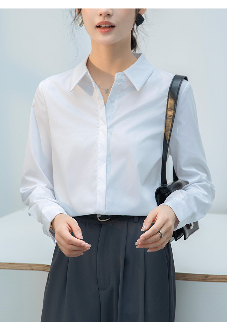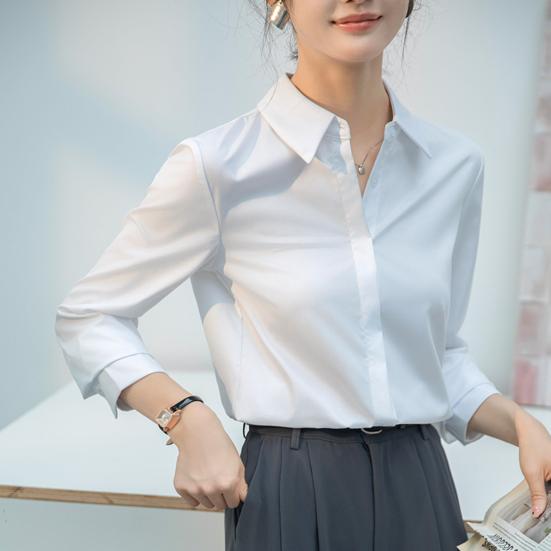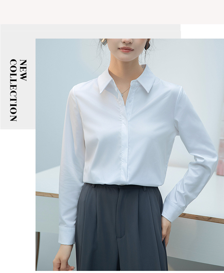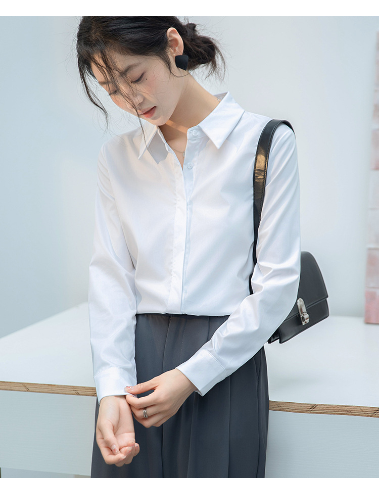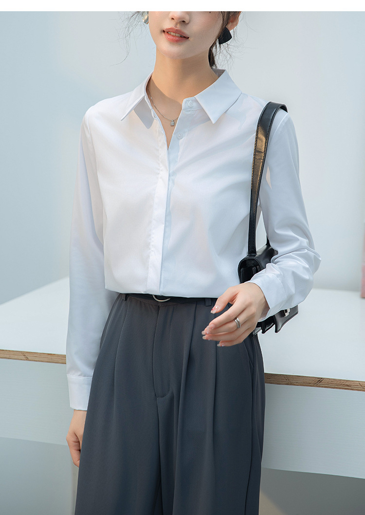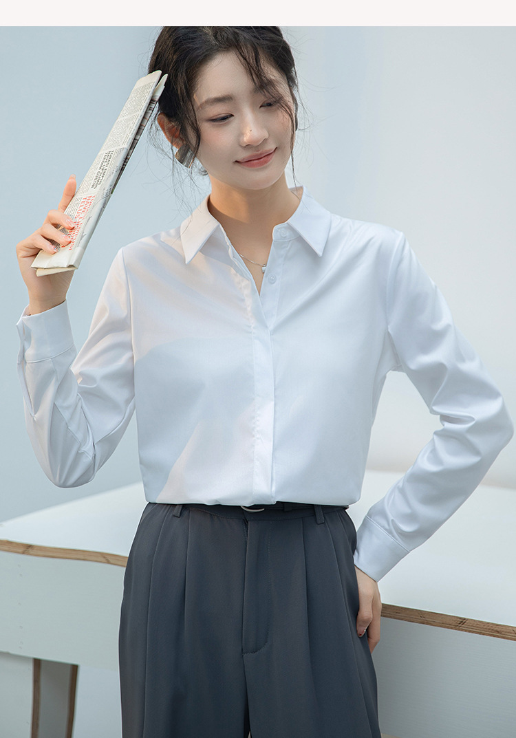 2024 리얼 샷 새로운 라이트 블루 셔츠 긴 소매 가을 다크 플래켓 POLO 칼라 모달 통근 기질 탑스토어 가기