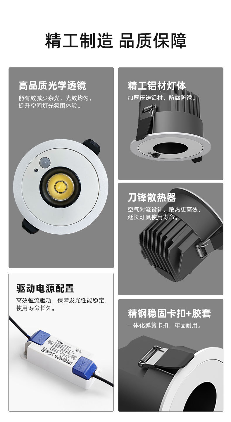인체 유도 스포트라이트 눈부심 방지 적외선 빛 센스 호텔 복도 입구 입구 입구 입구 입구 계단 내장 다운 라이트