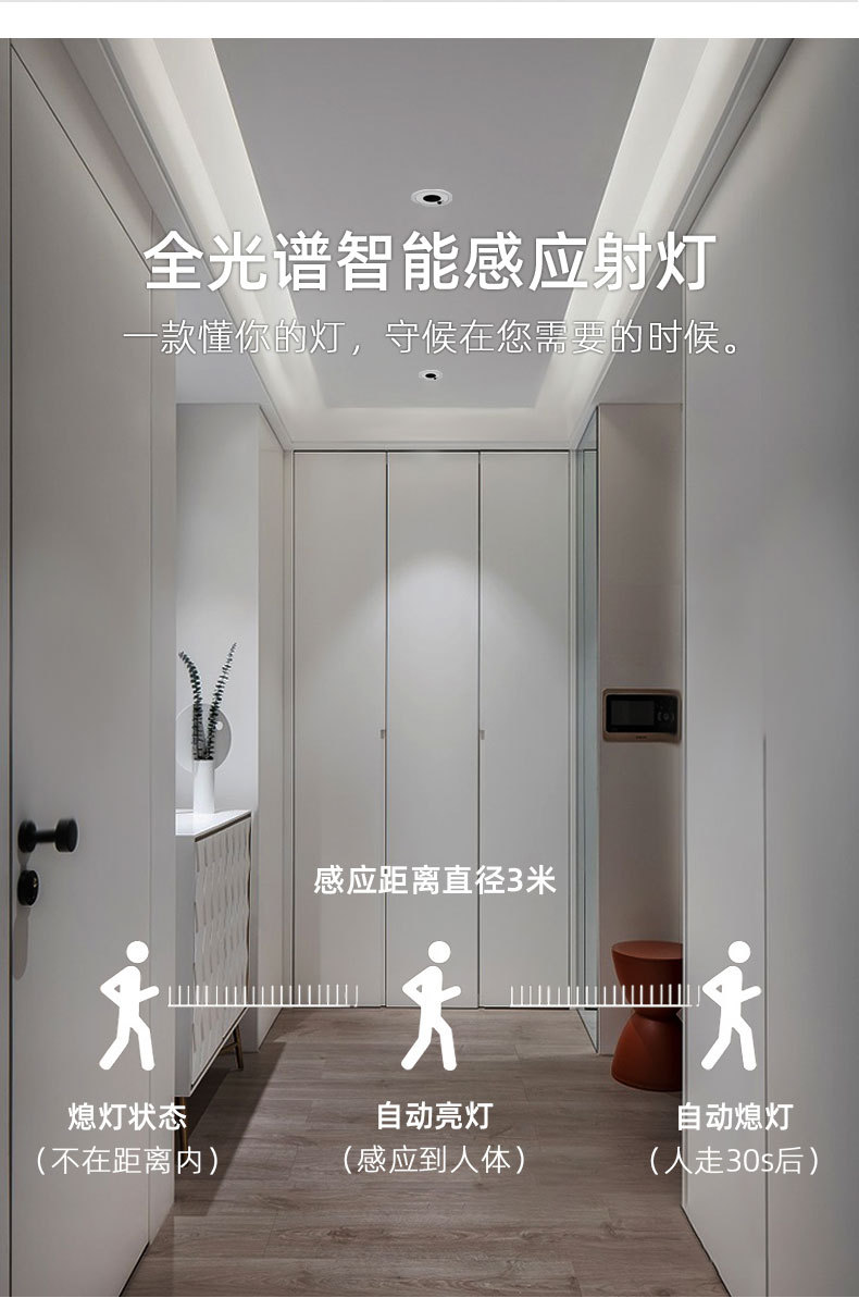 인체 유도 스포트라이트 눈부심 방지 적외선 빛 센스 호텔 복도 입구 입구 입구 입구 입구 계단 내장 다운 라이트스토어 가기