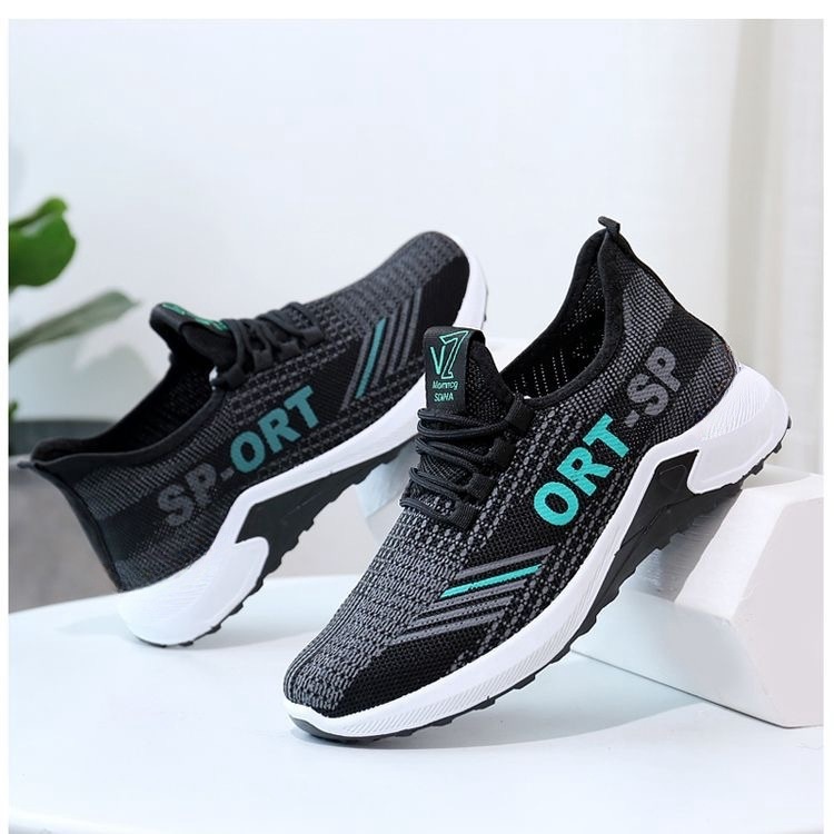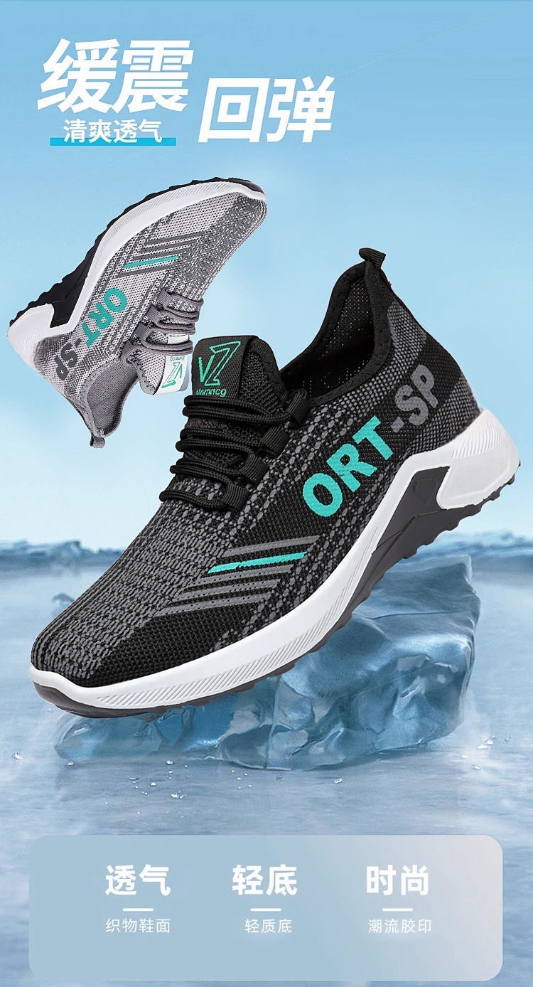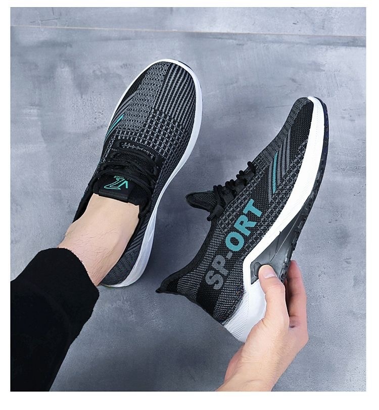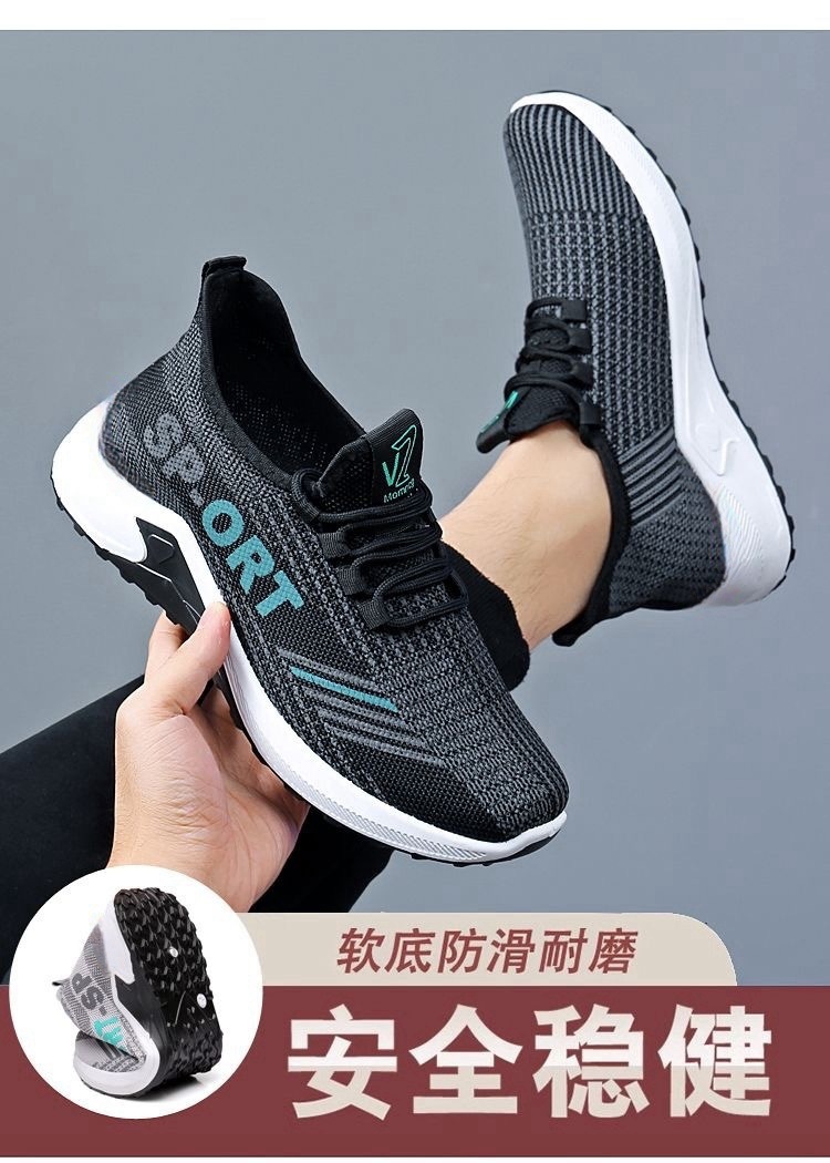 2024 봄과 가을 새로운 국경 대외 무역 TEMU 남성 신발 비행 메쉬 캐주얼 통기성 미끄럼 방지 스포츠 달리기 신발