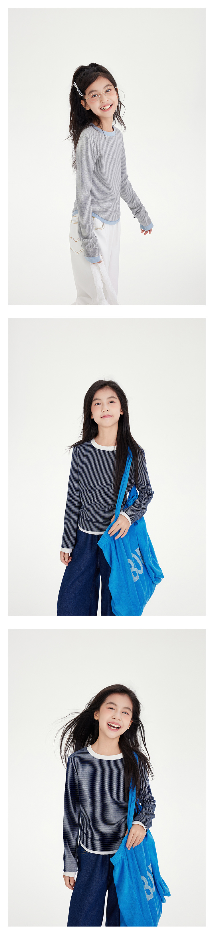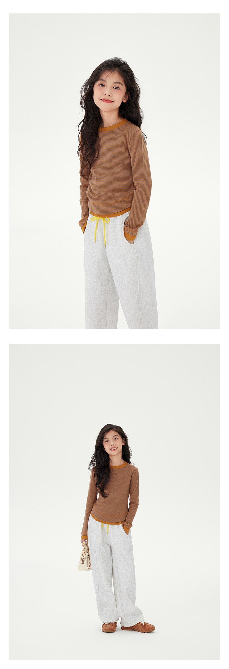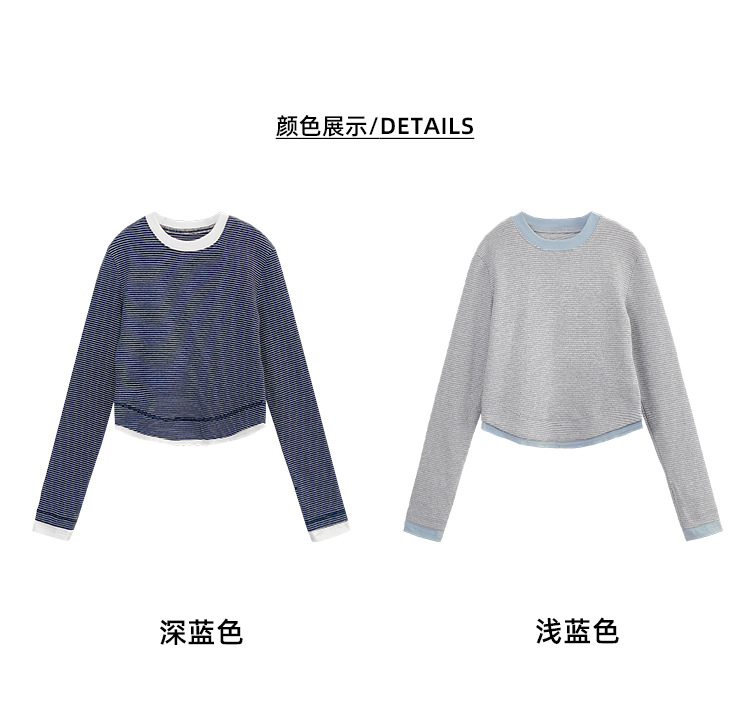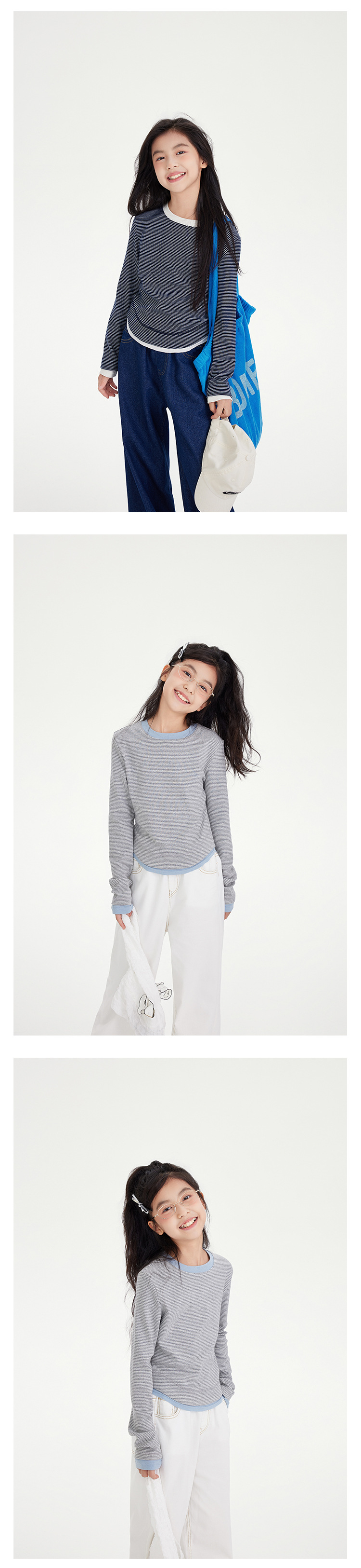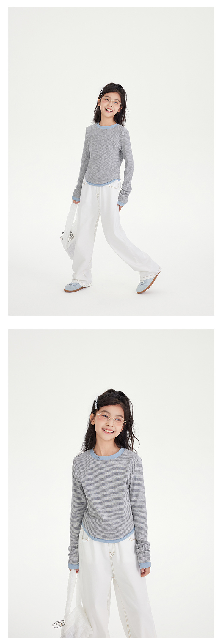 여아용 스트라이프 긴팔 티셔츠 2025 가을 겨울 신상 아동용 배색 라운드넥 니트 셔츠 숏 스타일 플리스 탑 트렌디스토어 가기