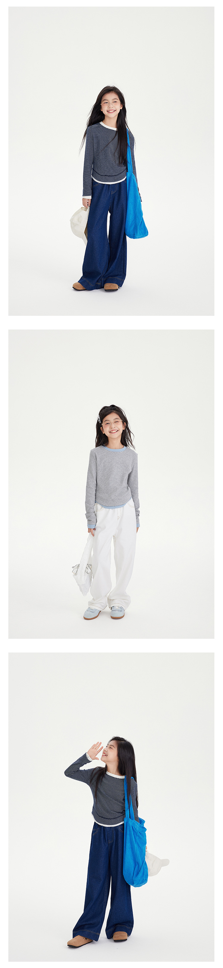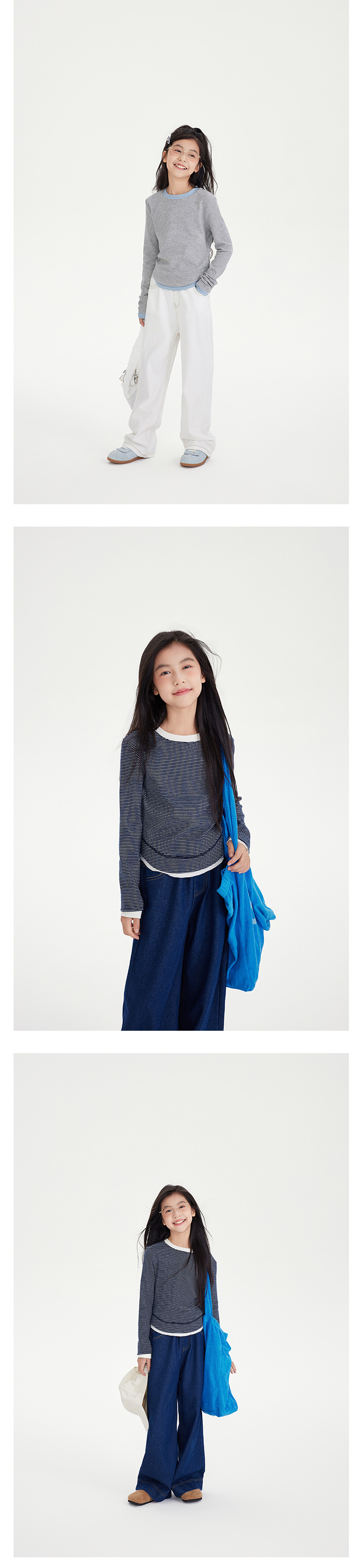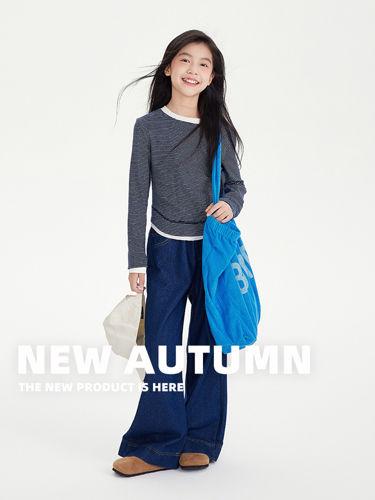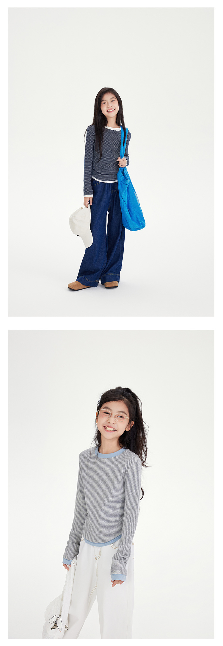 여아용 스트라이프 긴팔 티셔츠 2025 가을 겨울 신상 아동용 배색 라운드넥 니트 셔츠 숏 스타일 플리스 탑 트렌디스토어 가기