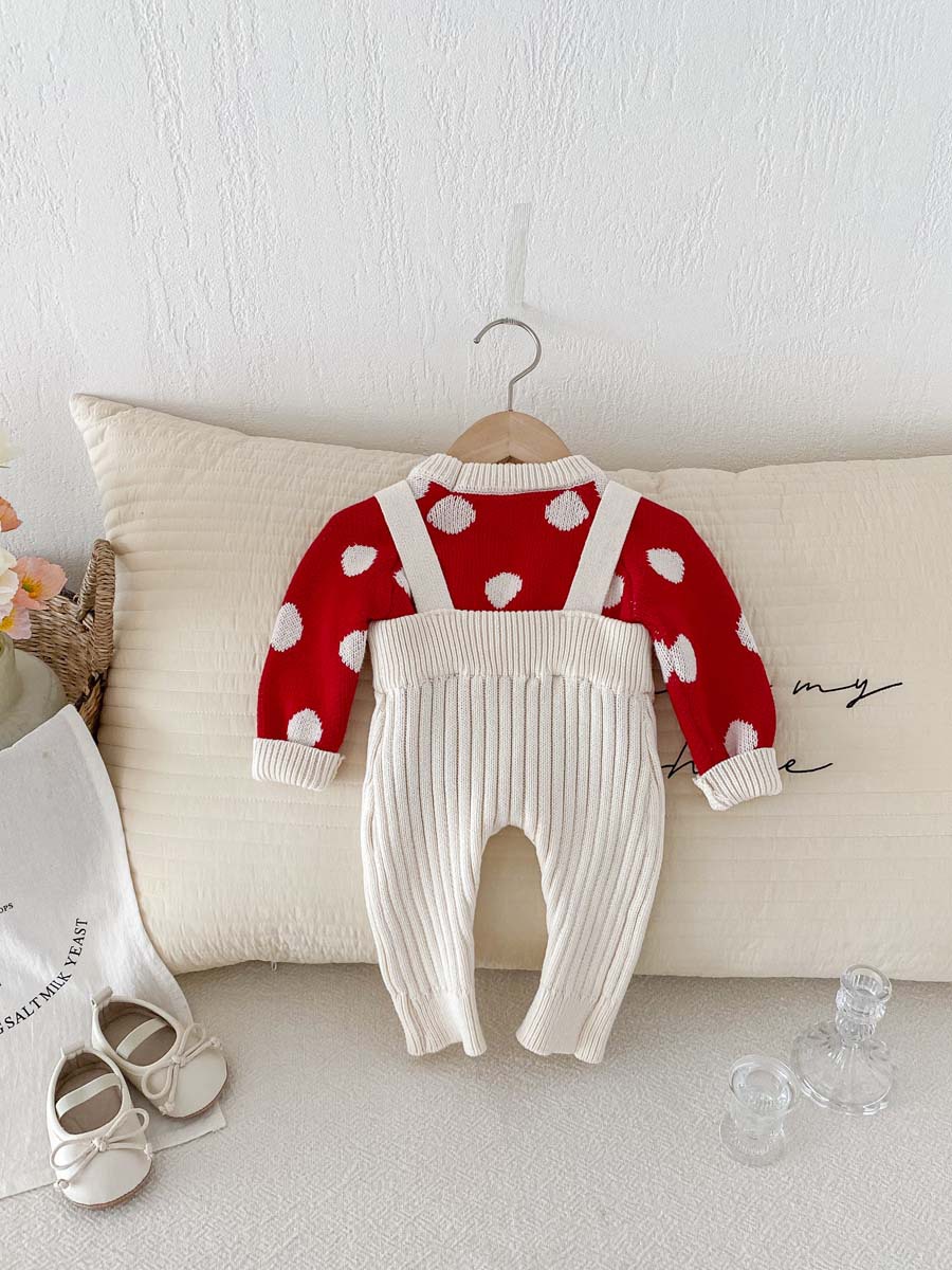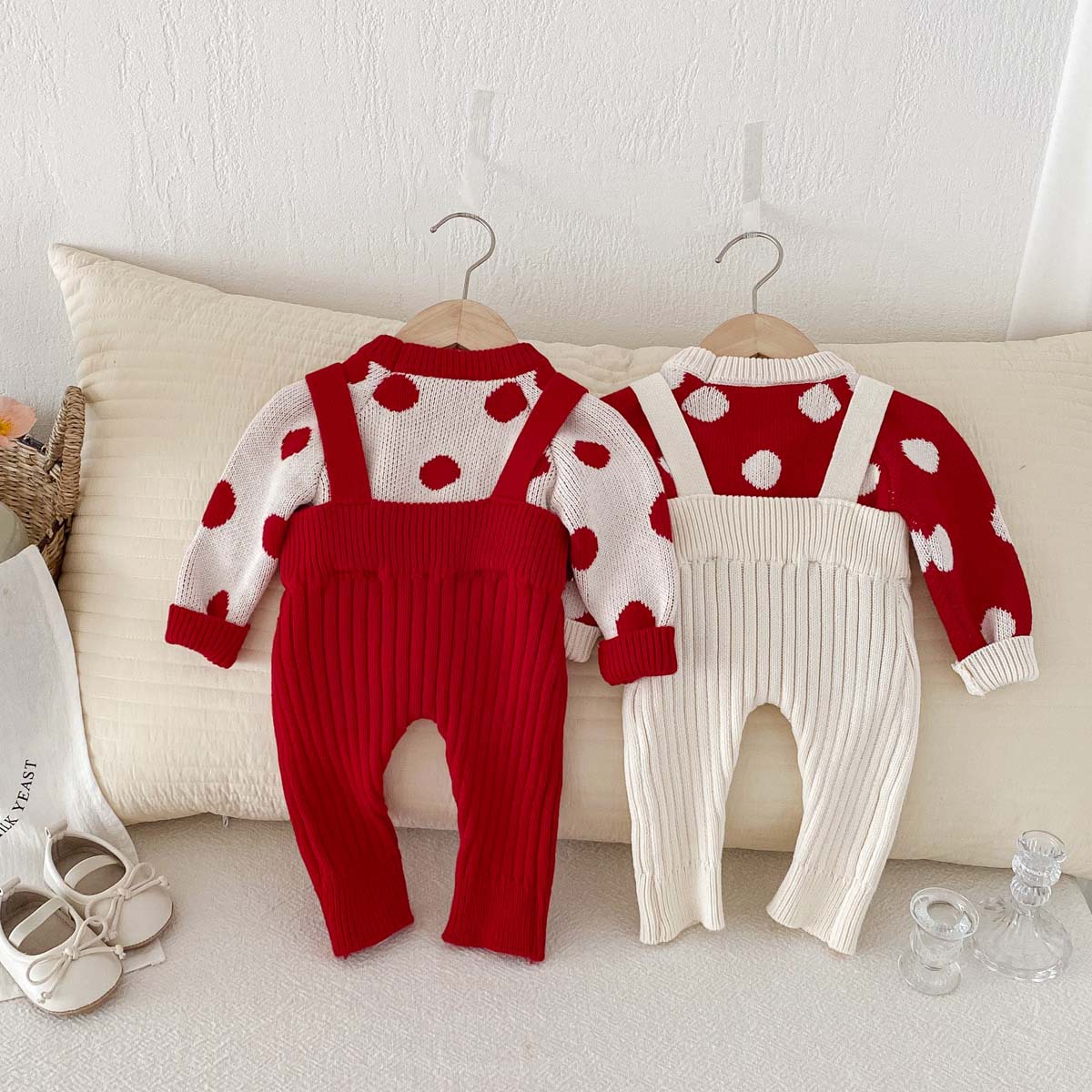 가을 겨울 신상 아기 니트 스웨터 바지 멜빵바지 남녀 아기용 패셔너블한 도트무늬 긴팔 라운드넥 의류