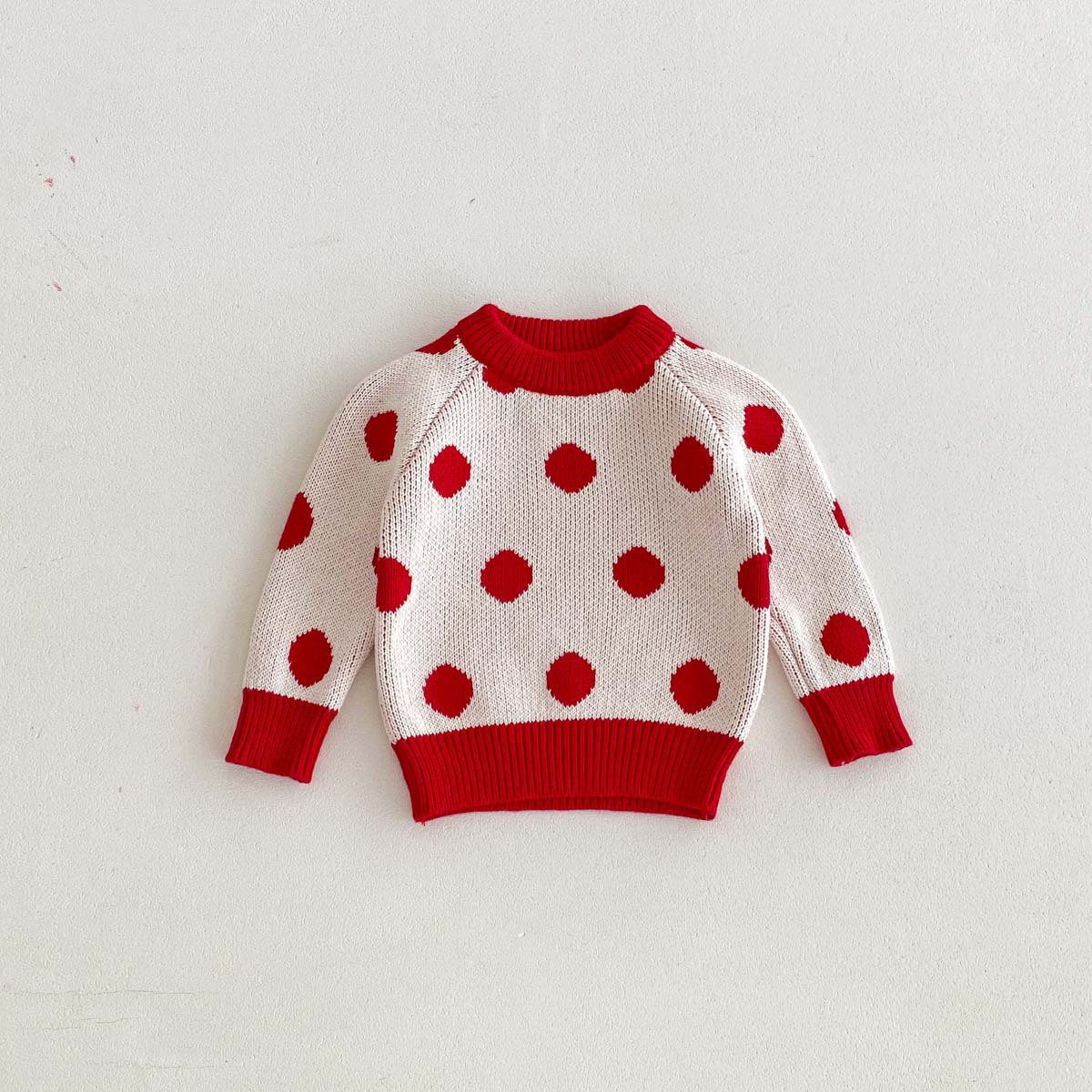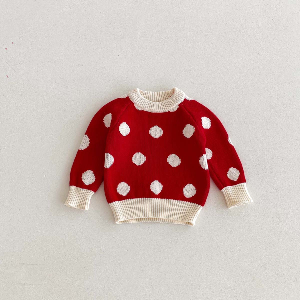 가을 겨울 신상 아기 니트 스웨터 바지 멜빵바지 남녀 아기용 패셔너블한 도트무늬 긴팔 라운드넥 의류스토어 가기