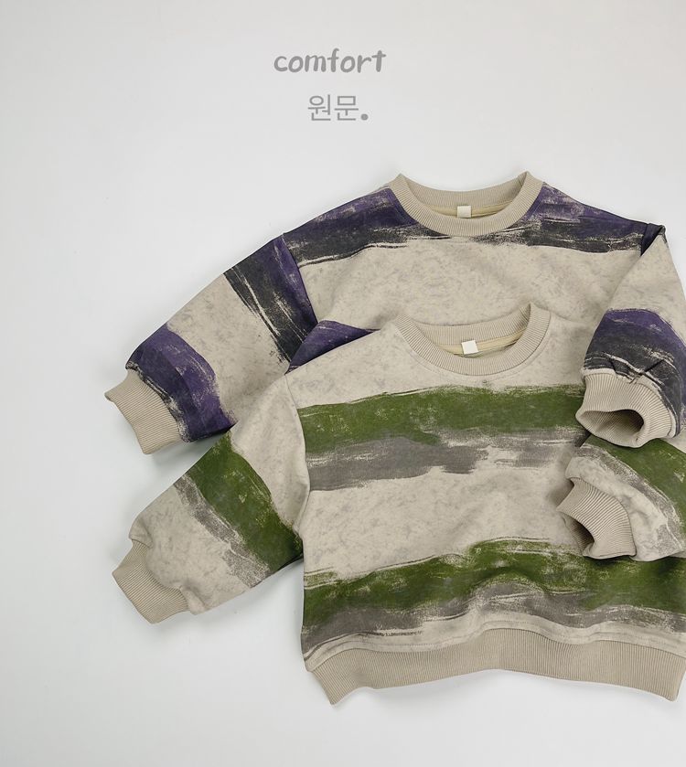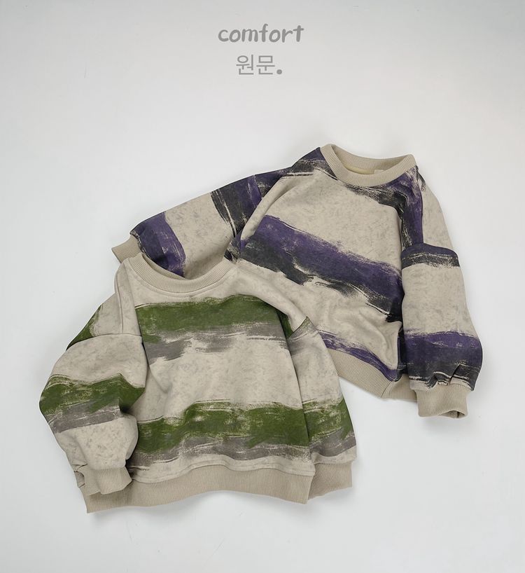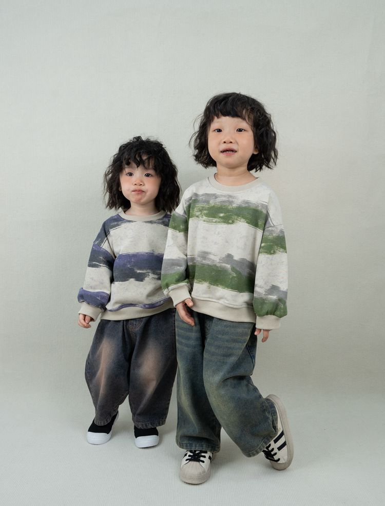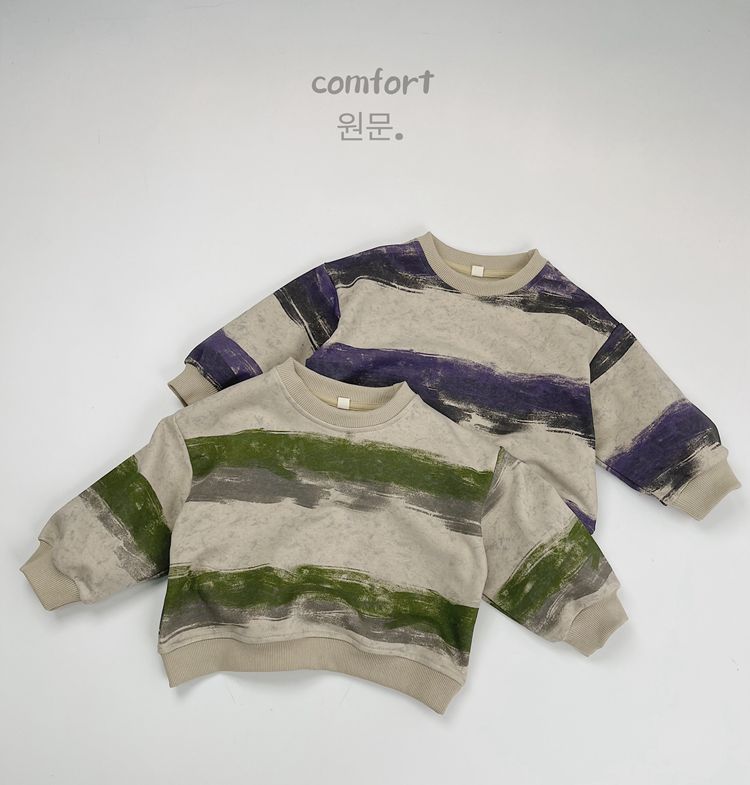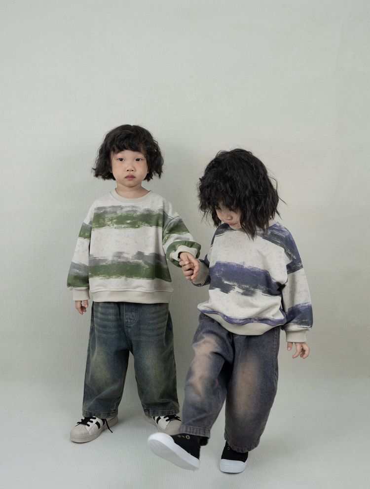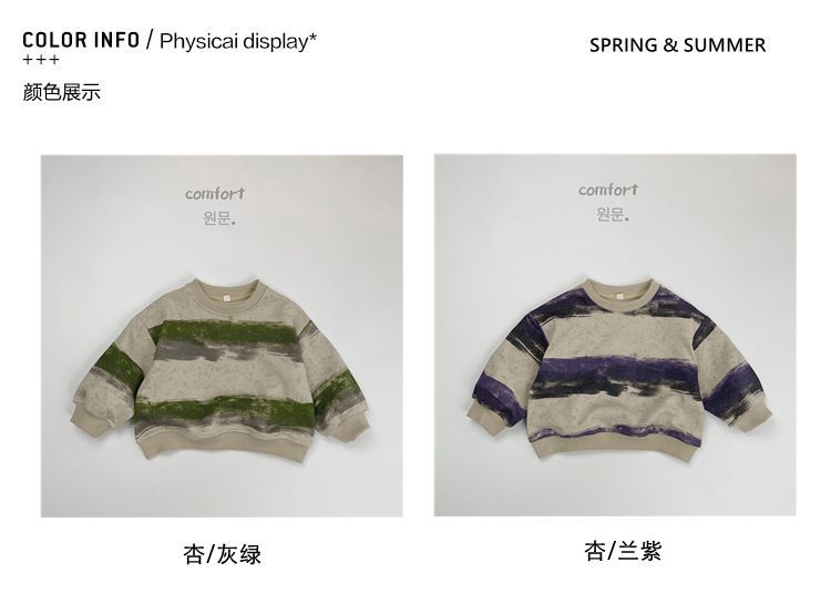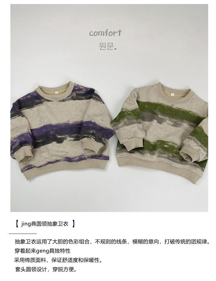 한시 한국판 아동용 스웨트셔츠 2025 봄 가을 신상 남녀공용 추상 스트라이프 긴팔 스웨트셔츠 캐주얼 풀오버스토어 가기