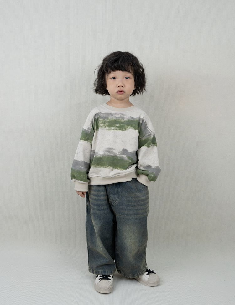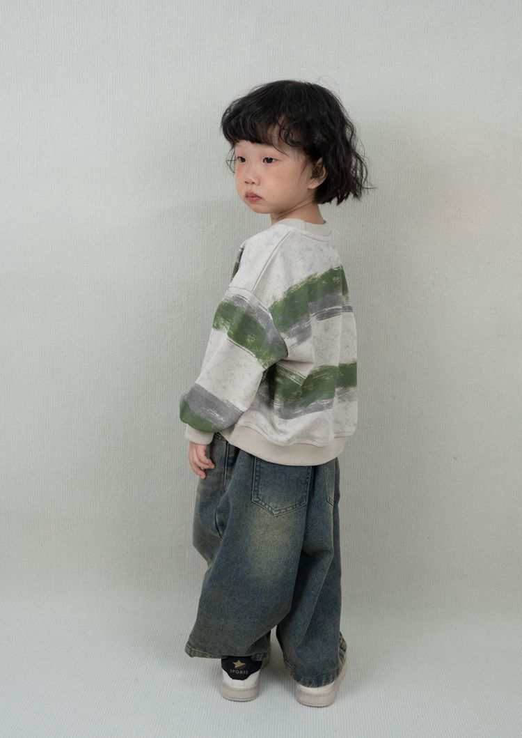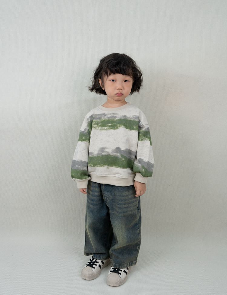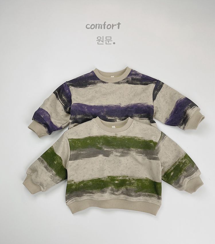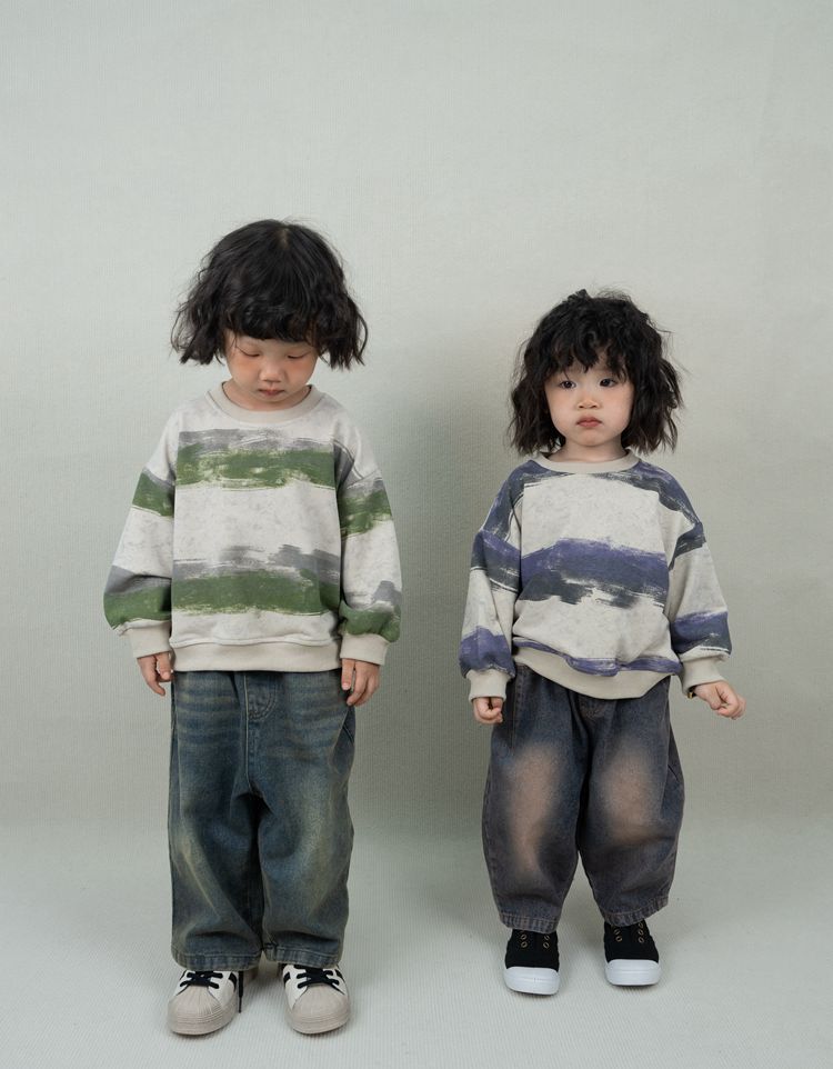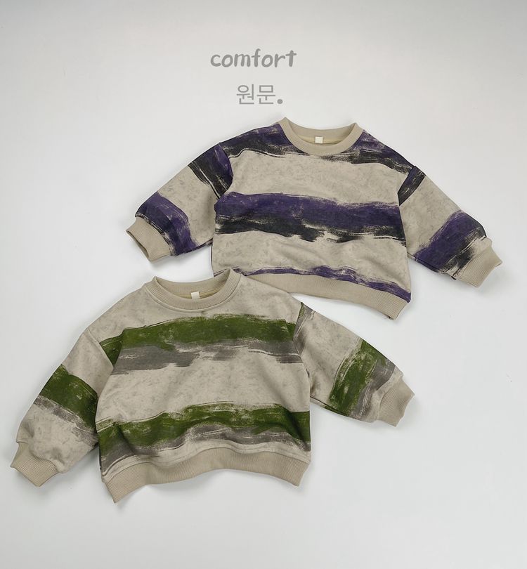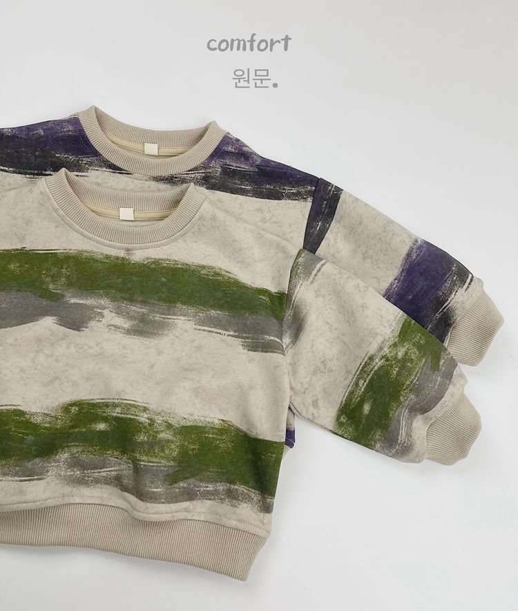 한시 한국판 아동용 스웨트셔츠 2025 봄 가을 신상 남녀공용 추상 스트라이프 긴팔 스웨트셔츠 캐주얼 풀오버스토어 가기
