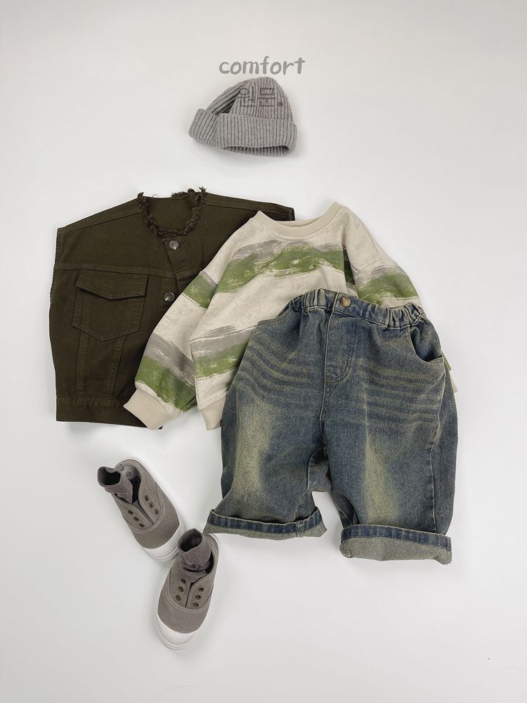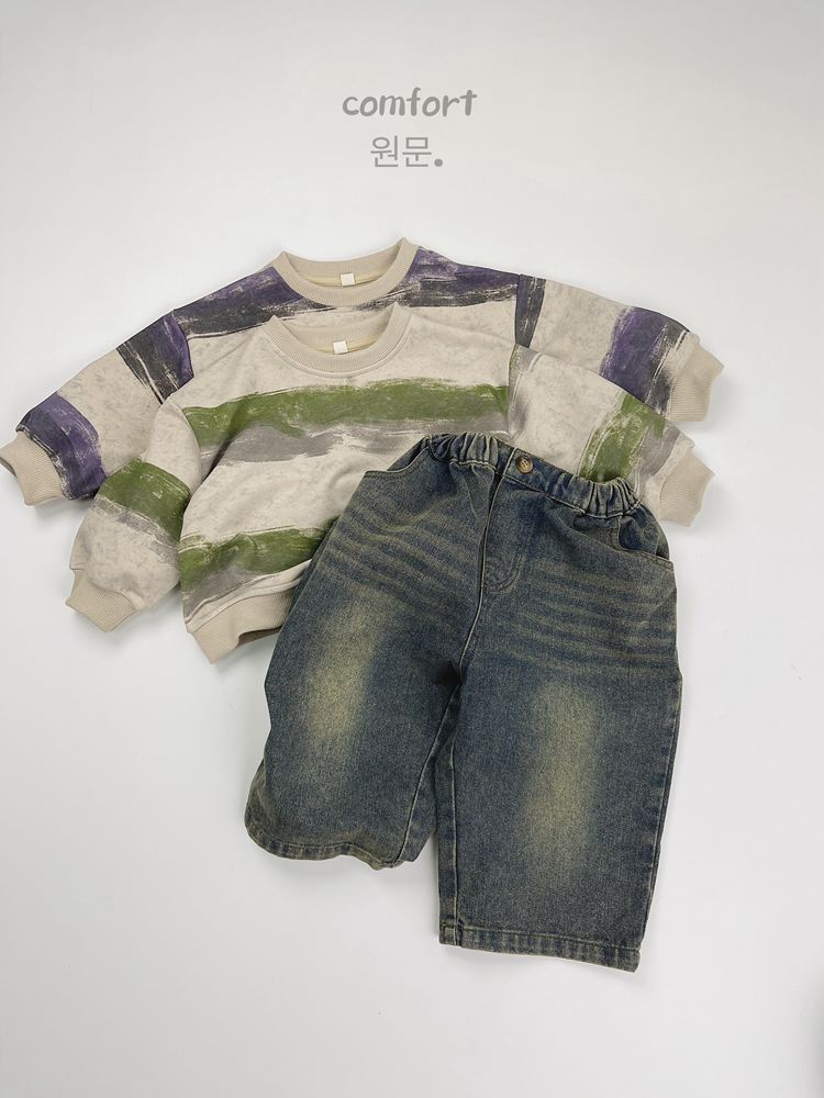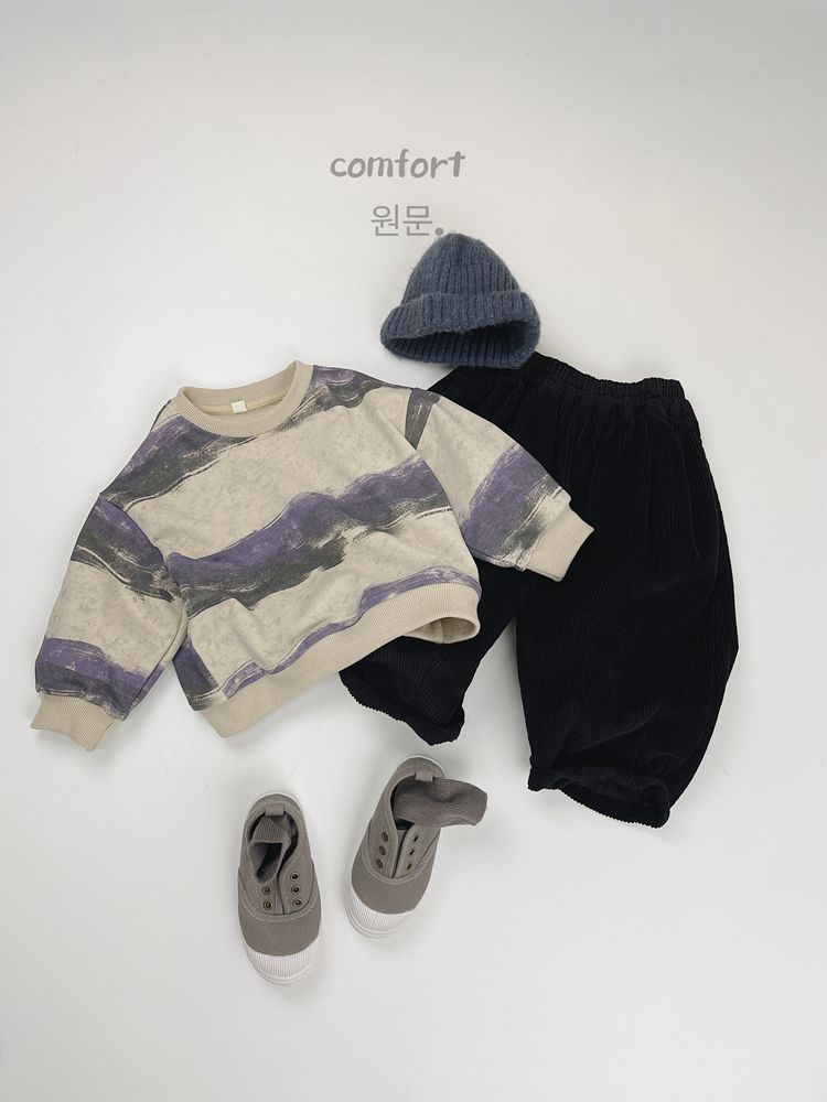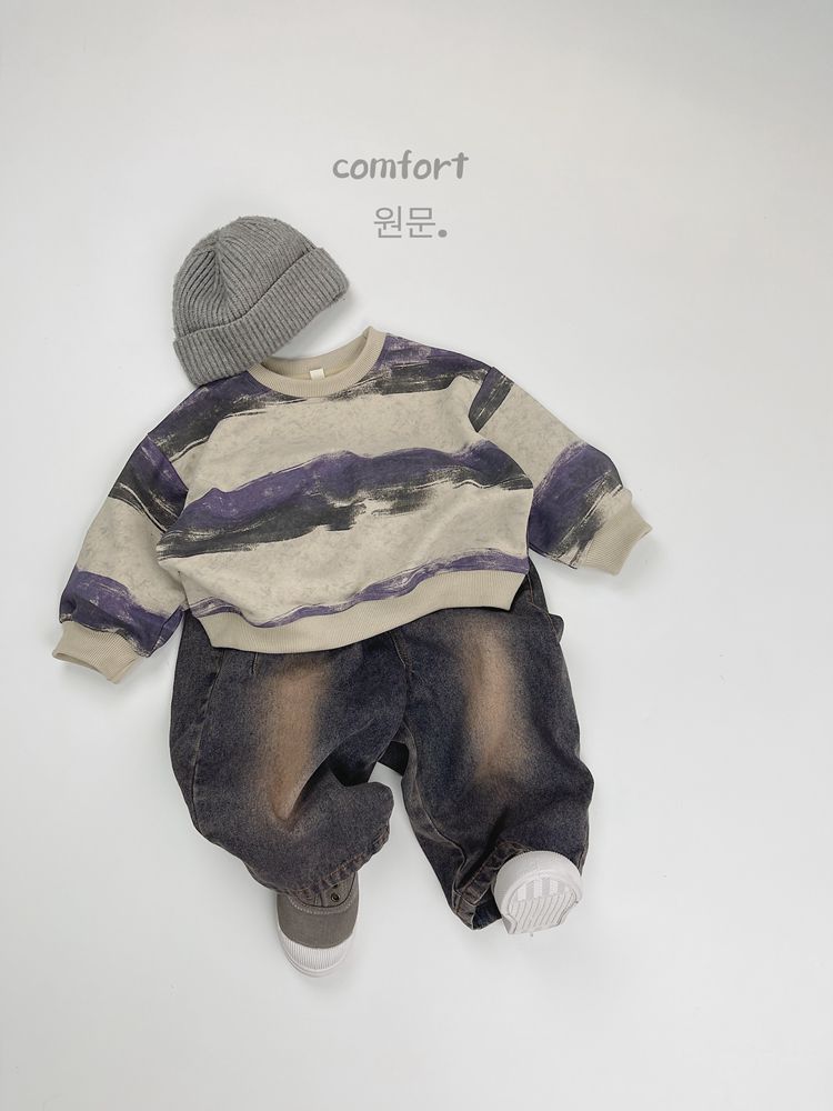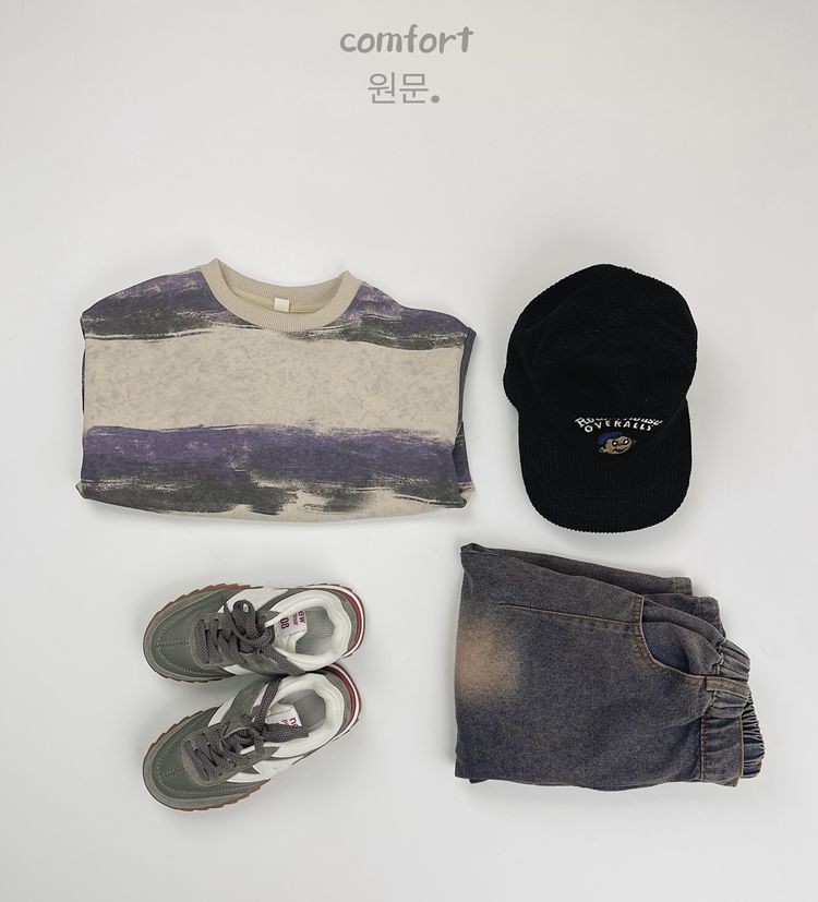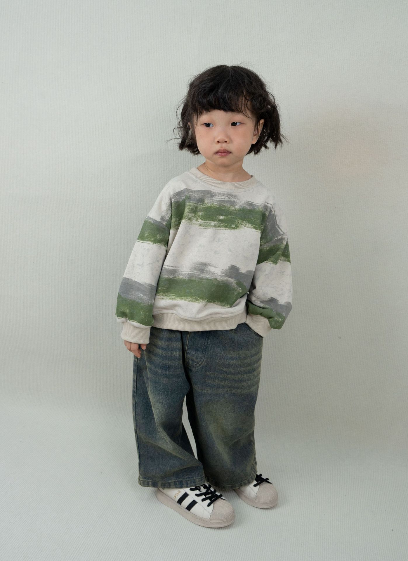 한시 한국판 아동용 스웨트셔츠 2025 봄 가을 신상 남녀공용 추상 스트라이프 긴팔 스웨트셔츠 캐주얼 풀오버스토어 가기