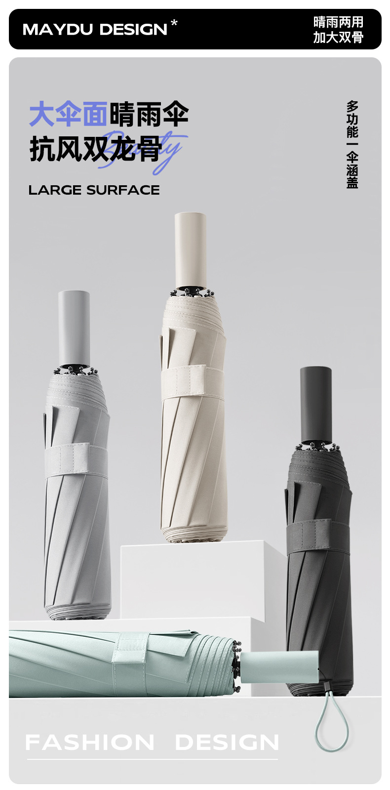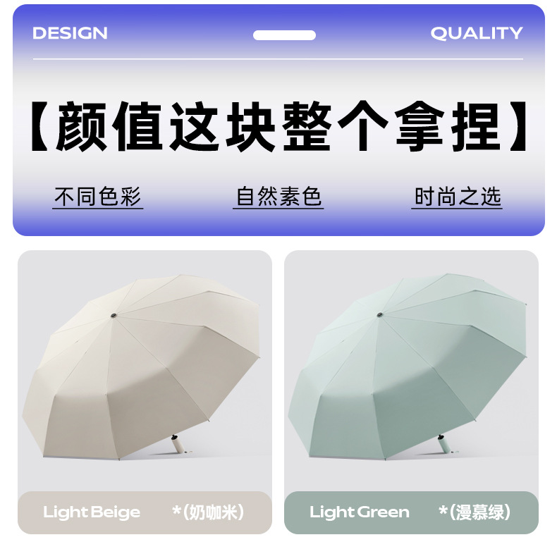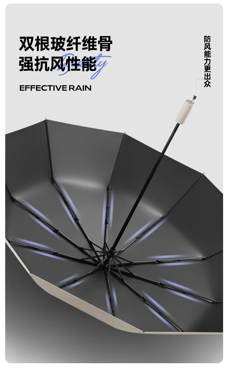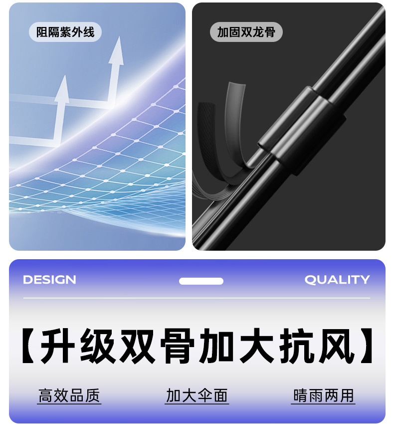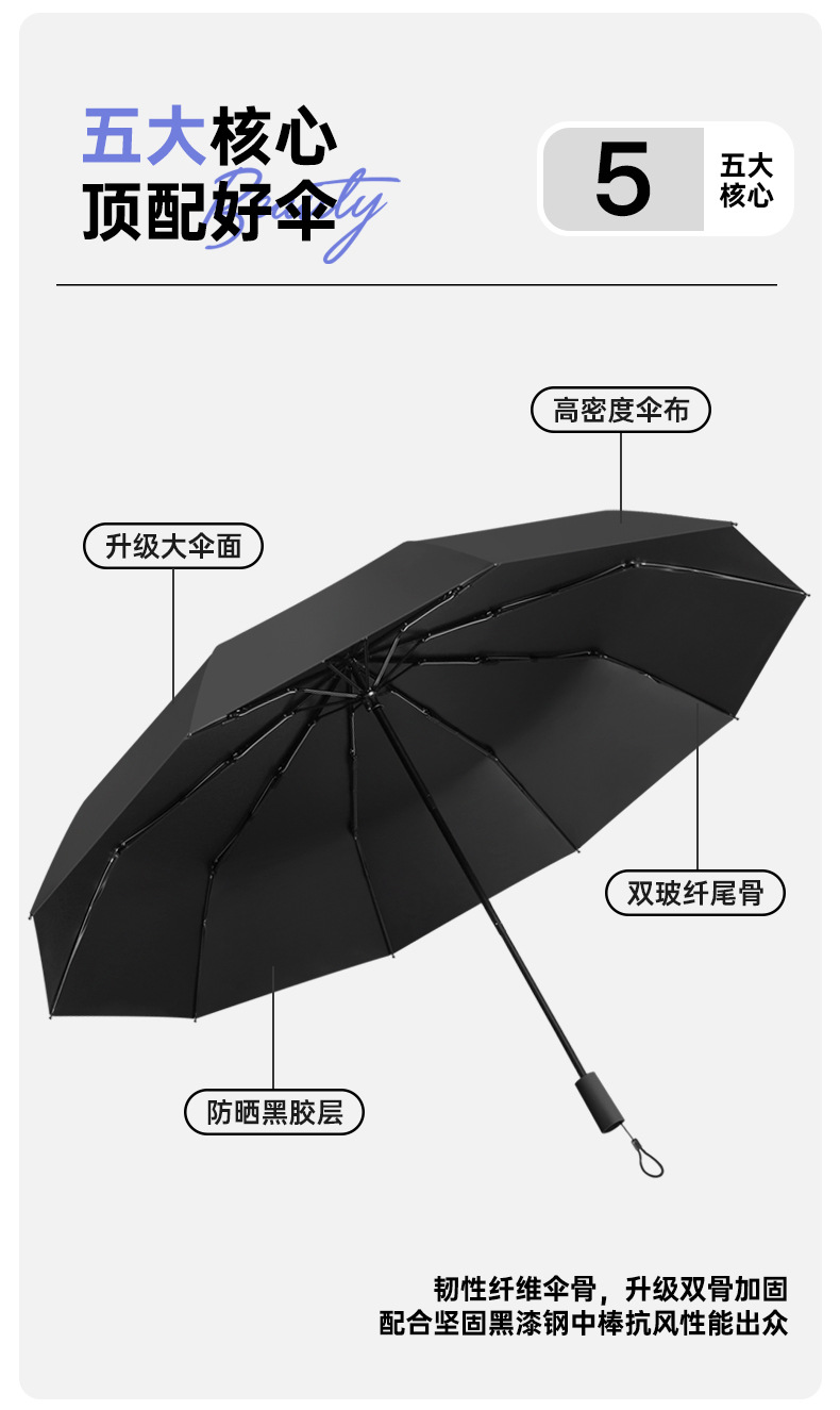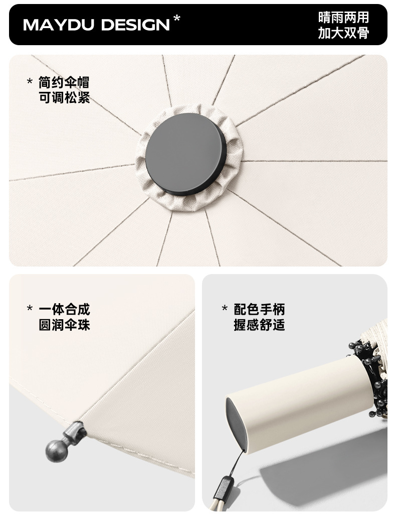 Ten-Bone 수동 블랙 고무 접히는 이중 사용 강한 차양 태양 보호 UV 보호 2 인칭 Exas 태양 우산스토어 가기