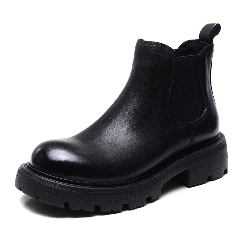 2024 가을, 겨울 새로운 첫 번째 레이어 소 가죽 수제 복고풍 캐주얼 다목적 첼시 여성 부츠 스퀘어 힐 짧은 부츠 유행스토어 가기