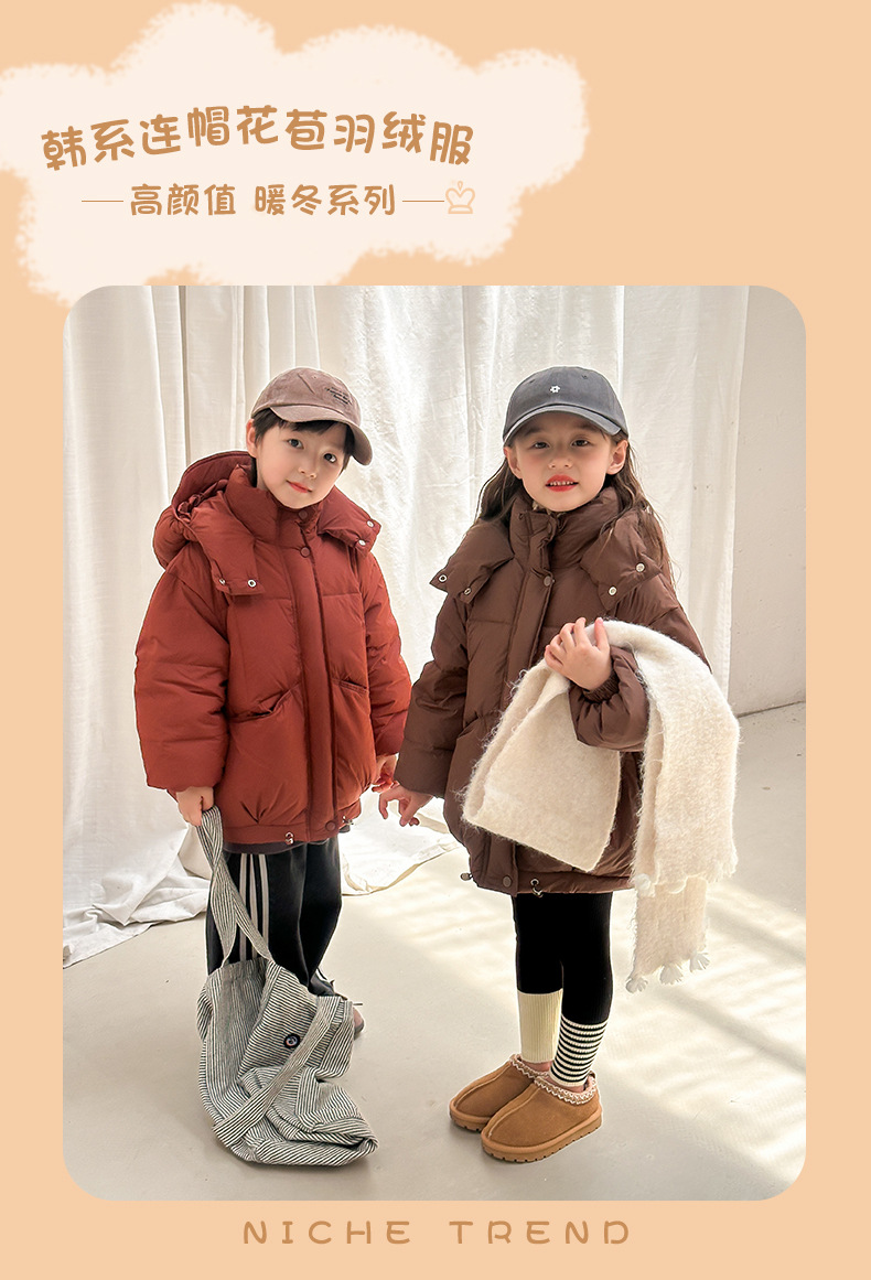 2025 어린이 겨울 새로운 스타일 중대형 어린이 다운 재킷 소년과 소녀 흰색 오리 다운 두꺼운 따뜻한 짧은 스타일 유행스토어 가기
