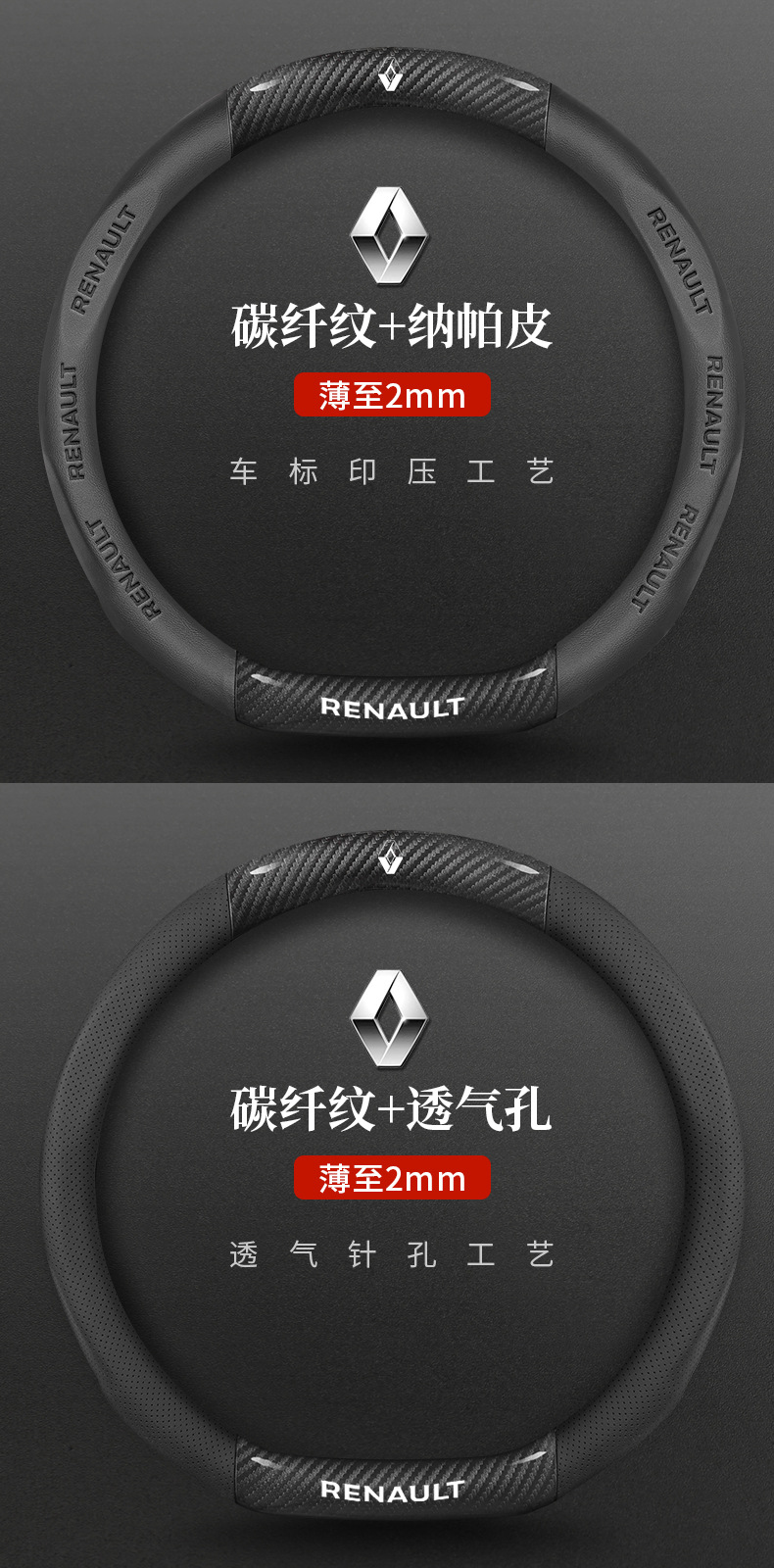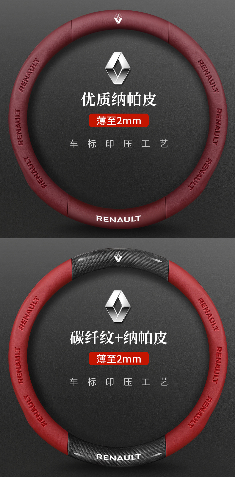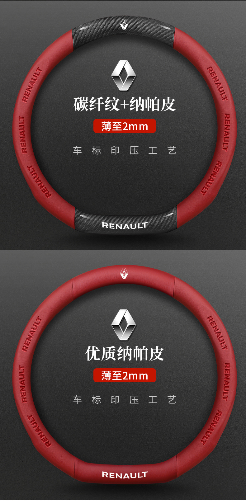• 중국 레드 탄소 섬유 패턴 + 나파 가죽 [라운드 전용] 르노 로고