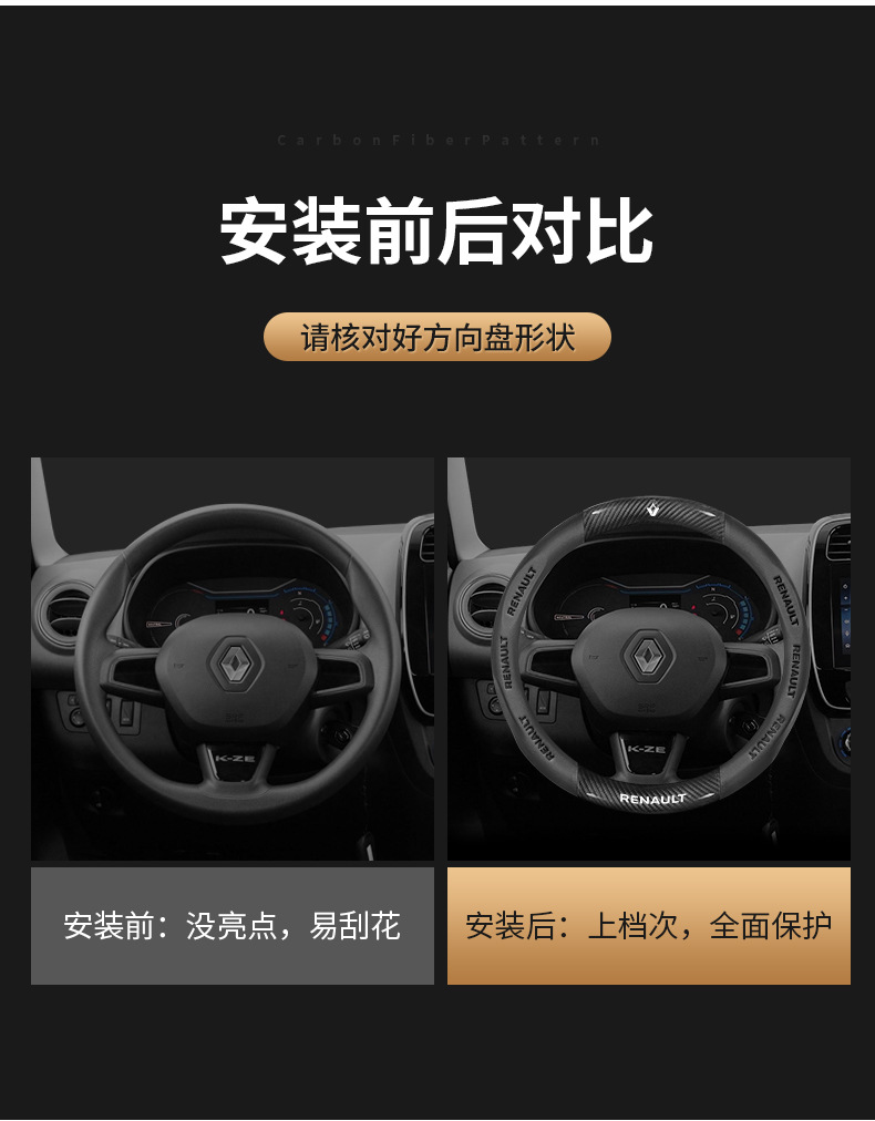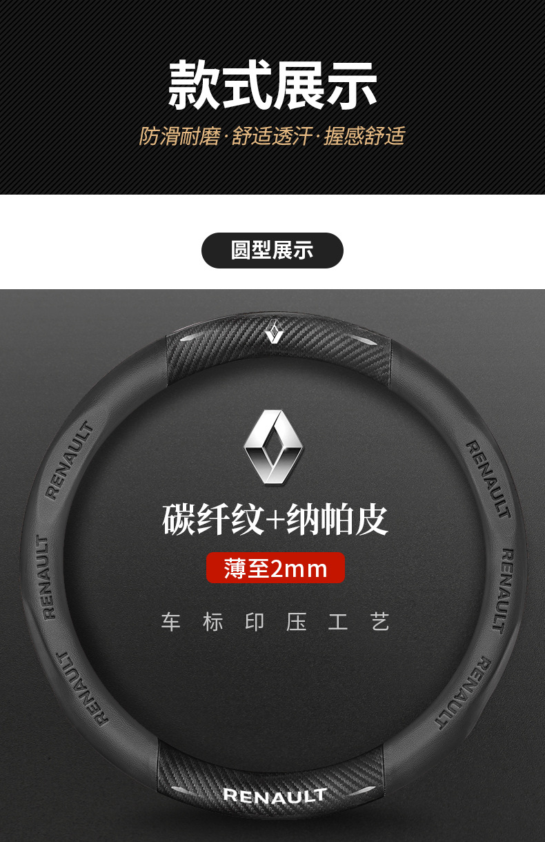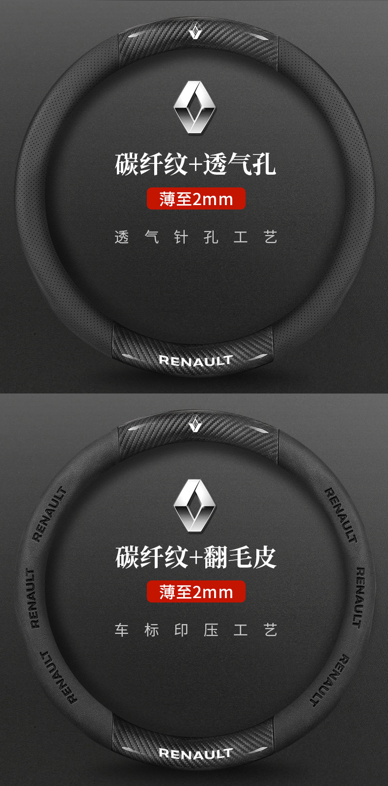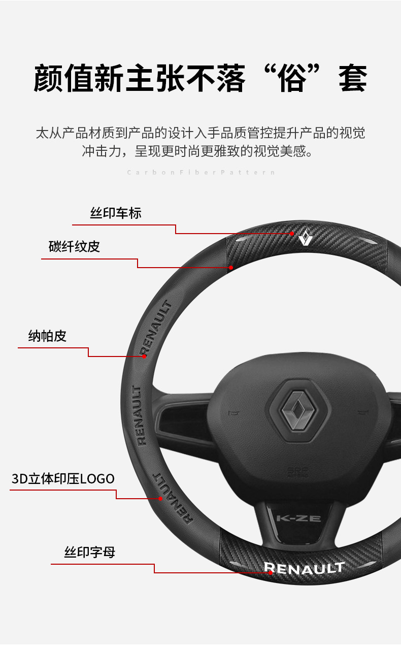 • 중국 레드 탄소 섬유 패턴 + 나파 가죽 [라운드 전용] 르노 로고