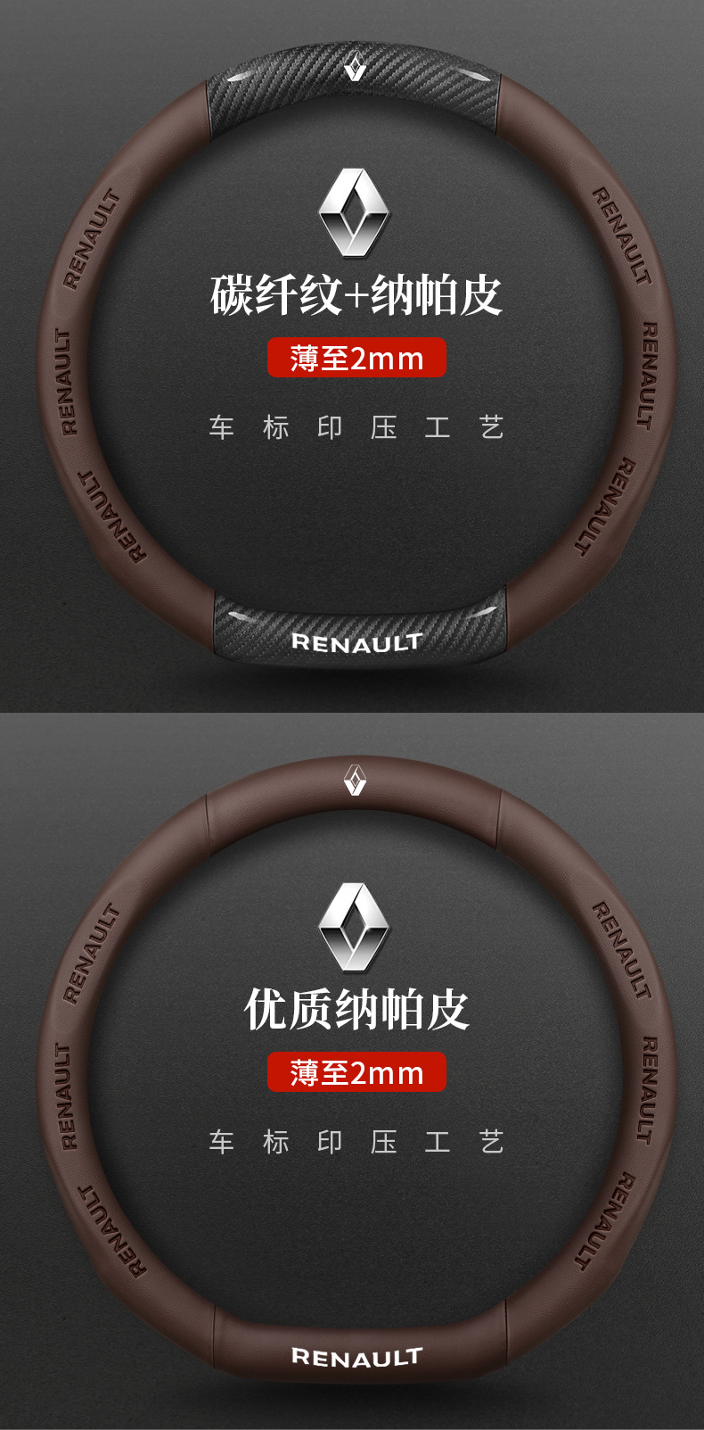• 브라운 탄소섬유 패턴 + 나파가죽 [라운드형 전용] 르노 로고