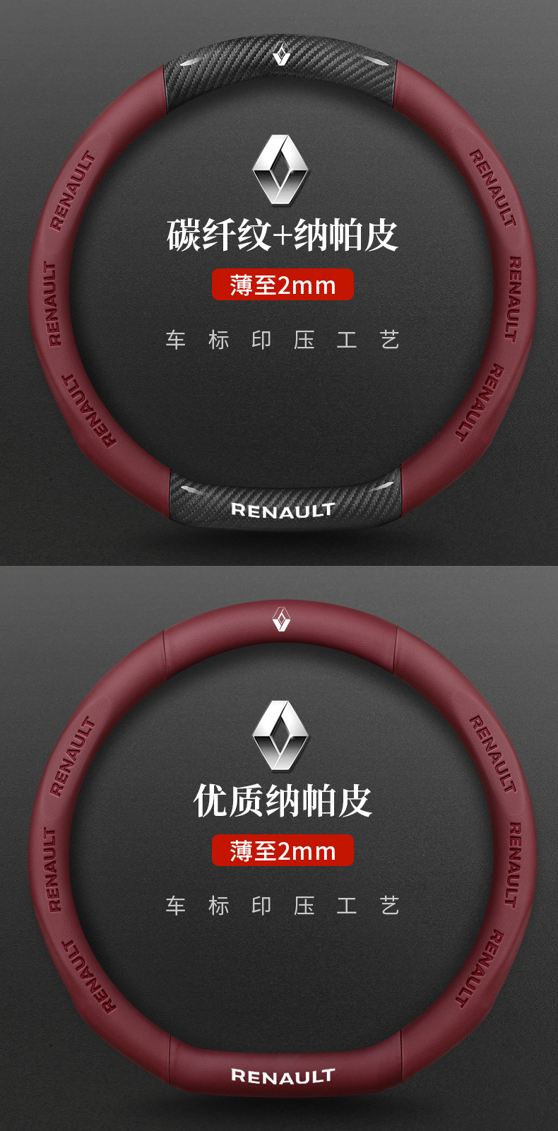 • 버건디 탄소섬유 패턴 + 나파가죽 [라운드형 전용] 르노 로고
