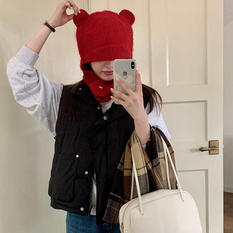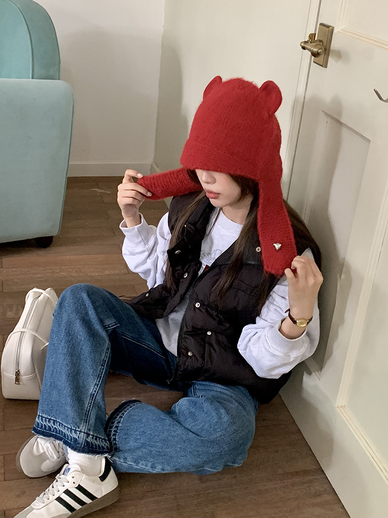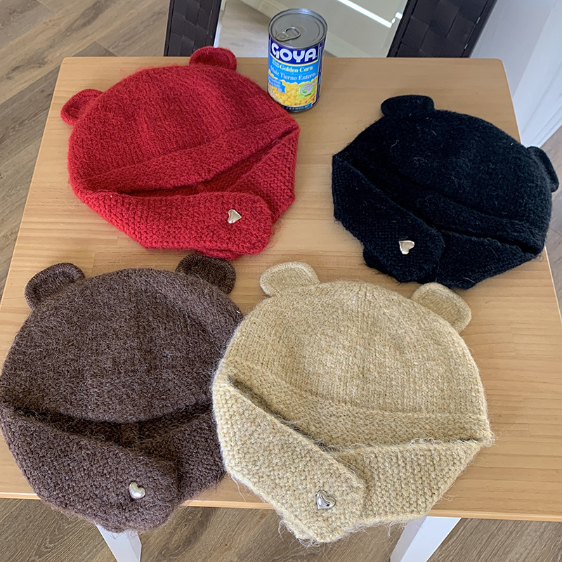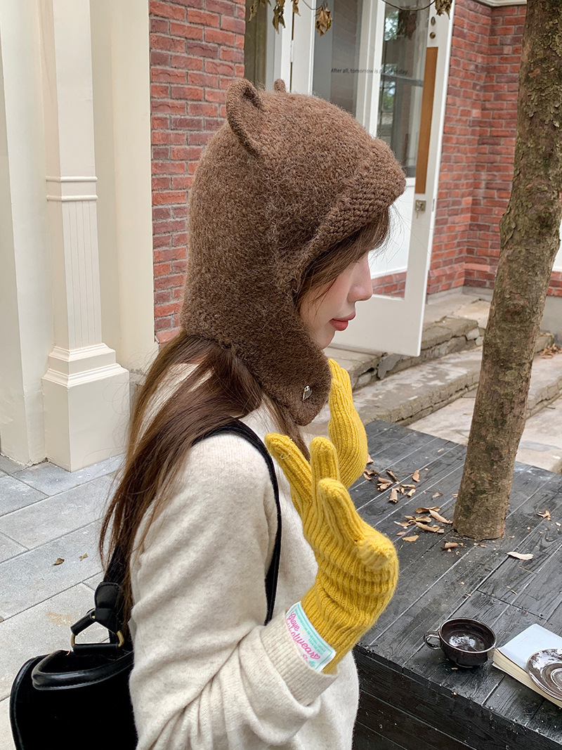 인터넷 유명한 작은 괴물 모자 둥근 귀 모자 일본과 한국 스타일 컵스 귀 귀여운 모자 따뜻한 귀 보호 머리 레이 펑 모자 여성스토어 가기