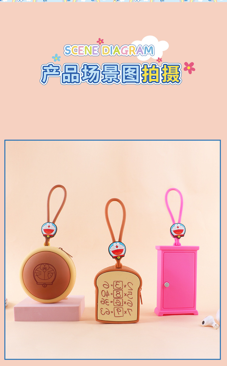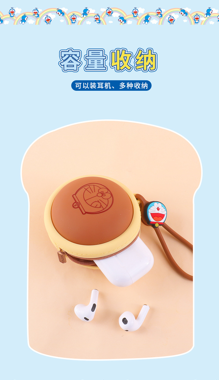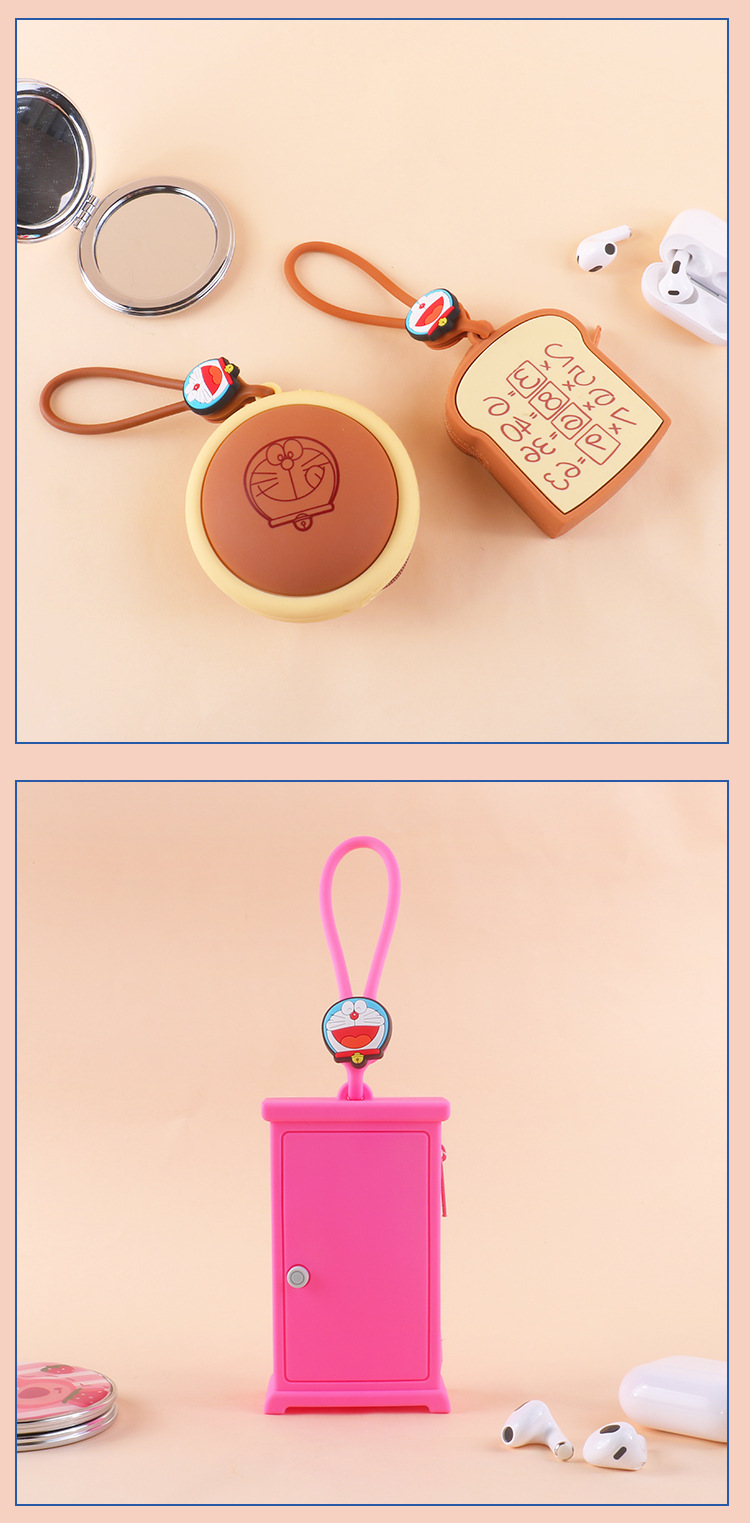 정품 공인 도라에몽 스테레오 동전 지갑 톤렌 실리콘 창조적 인 메모리 빵 임의의 문 이어폰 가방