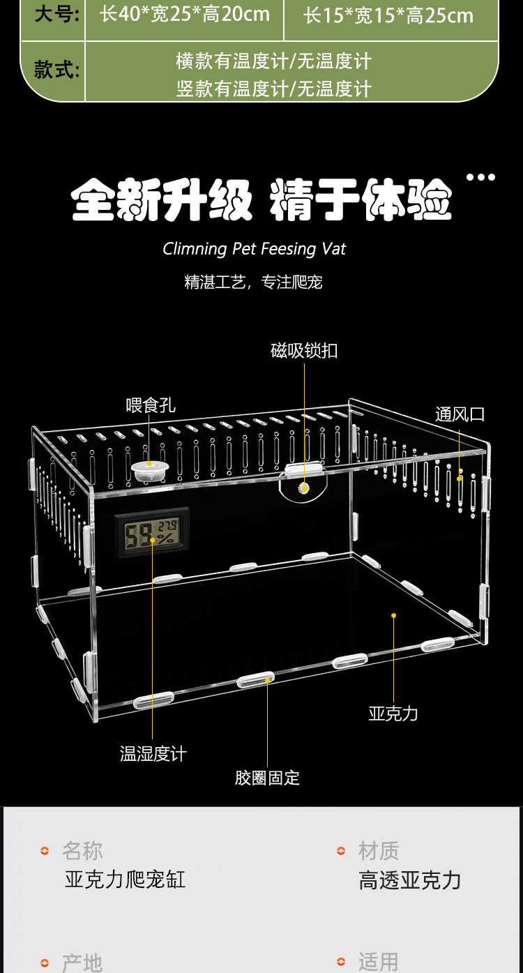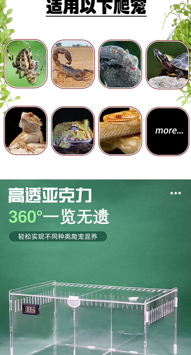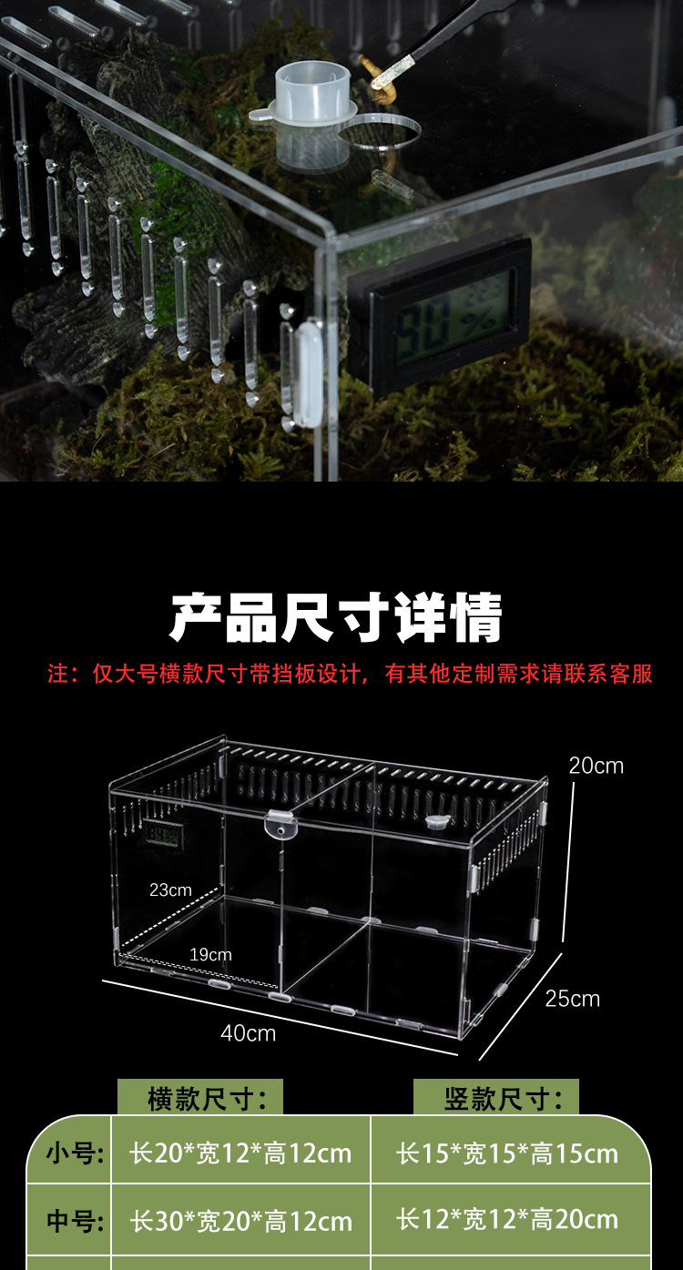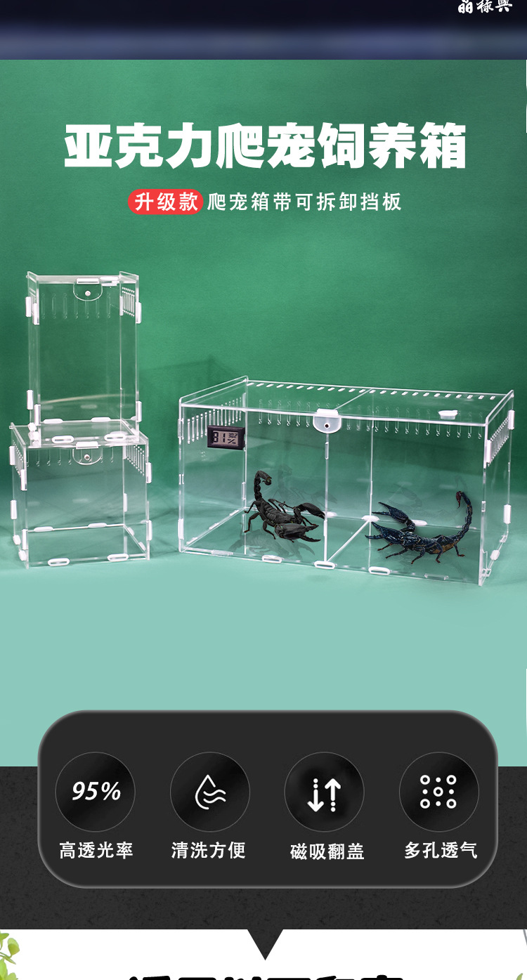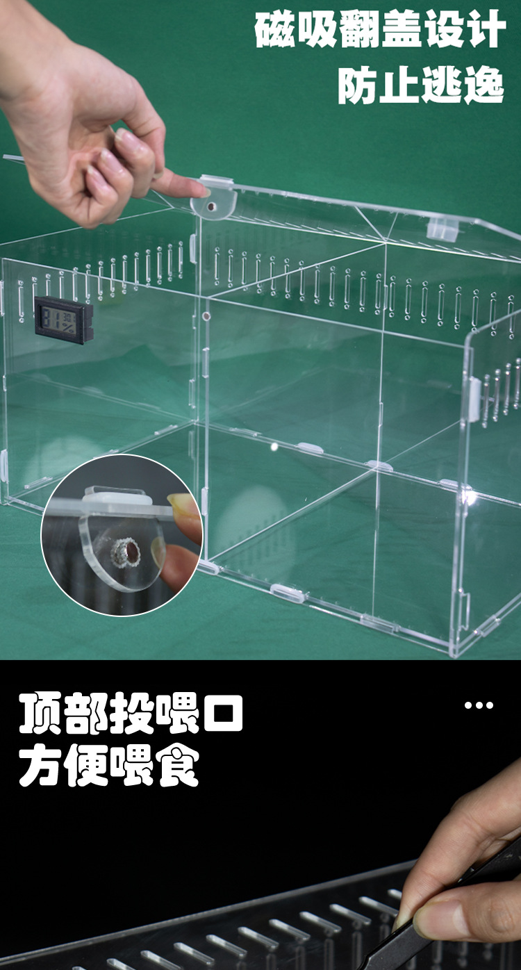 아크릴 투명한 애완 동물 파충류 공급 상자 거미 Shougong 도마뱀 전갈 옥수수 뱀 높은 투명한 데이트 공급 상자스토어 가기