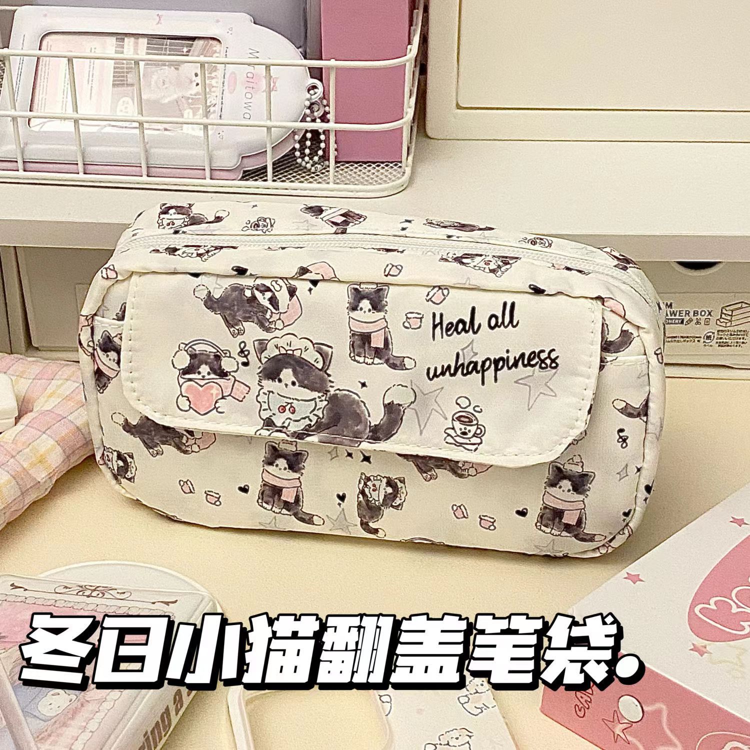 귀여운 통증 가방 대용량 연필 가방 대형 컬렉션 중학교 초등학교 학생 소녀 심장 다기능 문구 가방 한국 스타일스토어 가기
