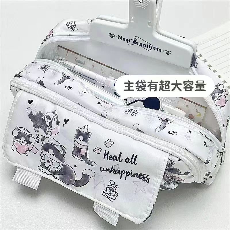 귀여운 통증 가방 대용량 연필 가방 대형 컬렉션 중학교 초등학교 학생 소녀 심장 다기능 문구 가방 한국 스타일