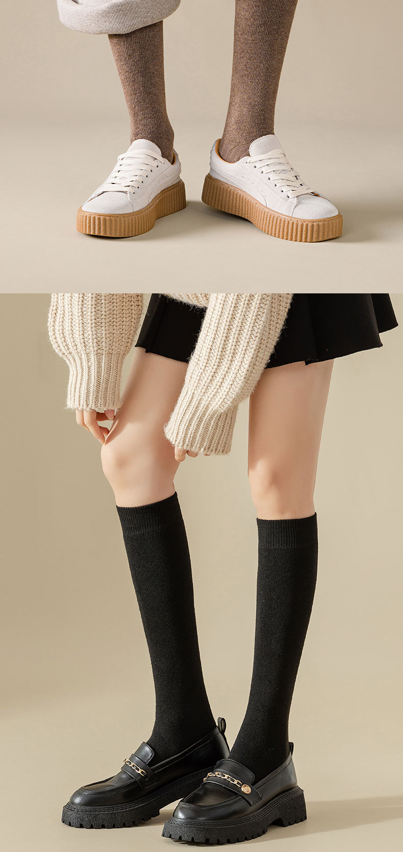 양말 여성의 가을과 겨울 두꺼운 따뜻한 스타킹 테리 종아리 양말 여학생 jk 일본 기모 하이면 양말