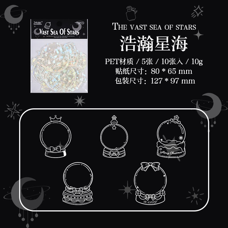 드림 스타 샌드 시리즈 병 애완 동물 레이저 스티커 종이 팩 10 방수 쉘 라이트 핸드 계정 장식 소재 스티커