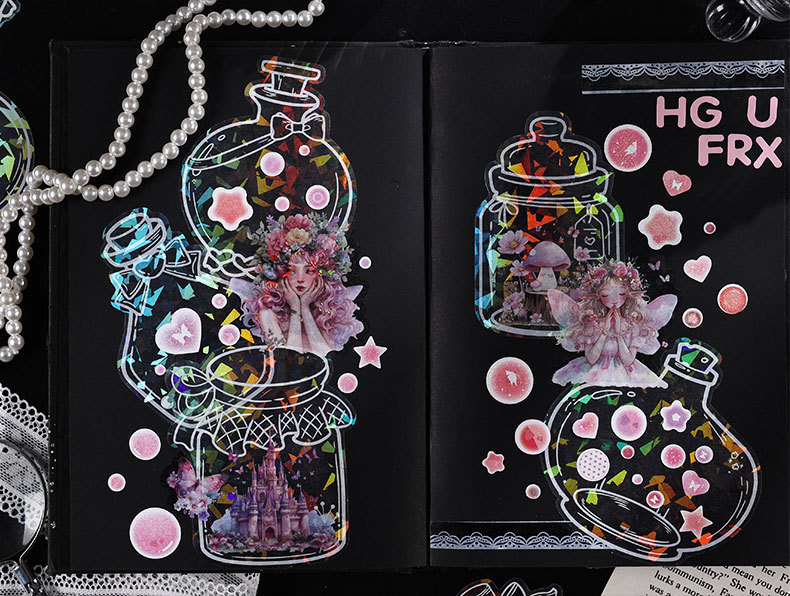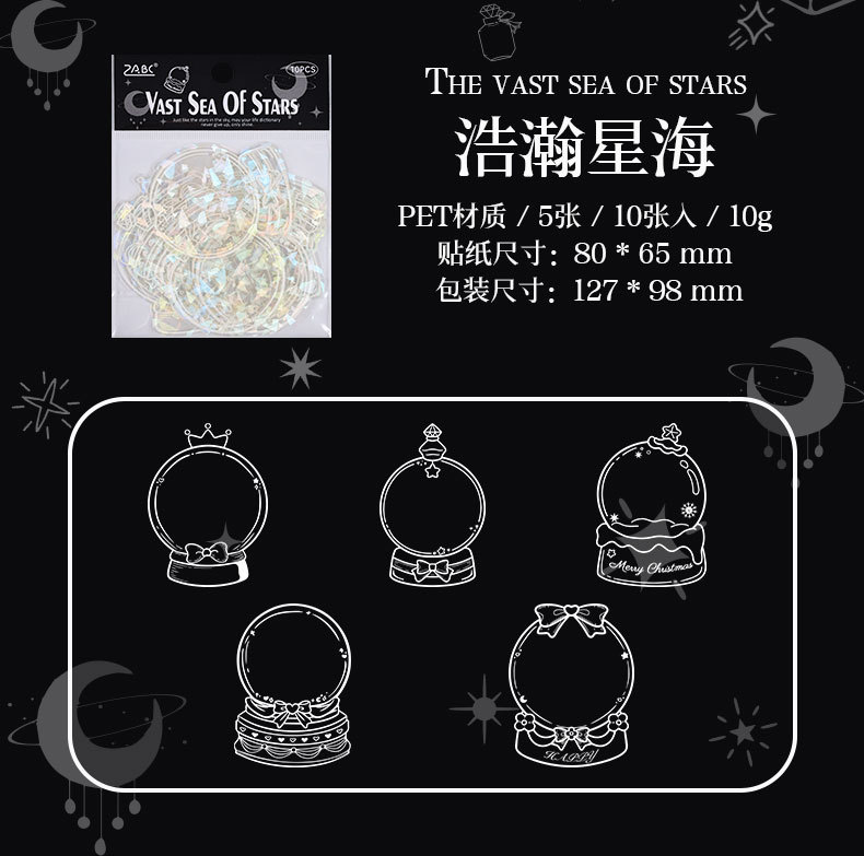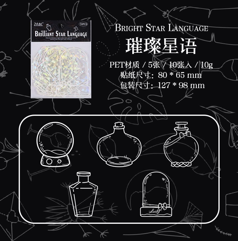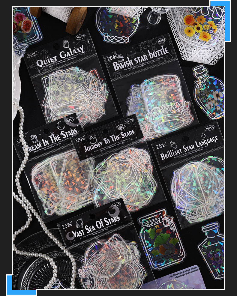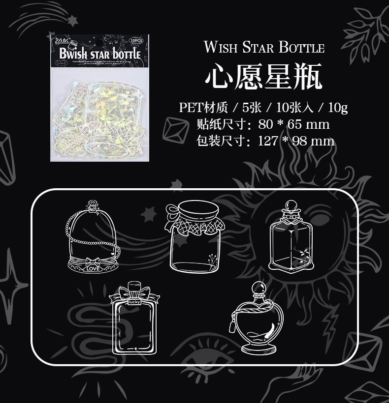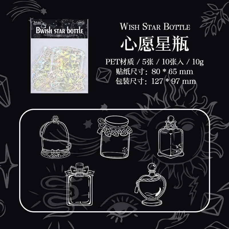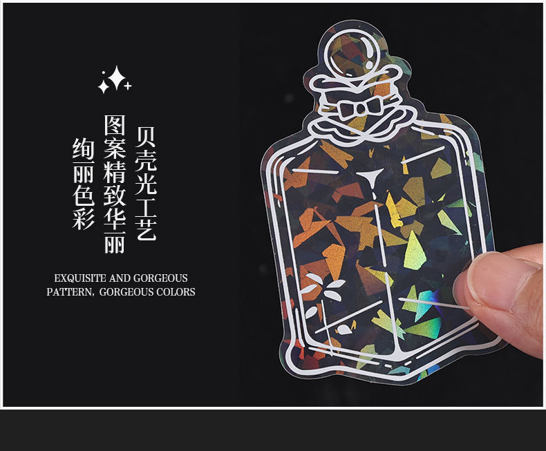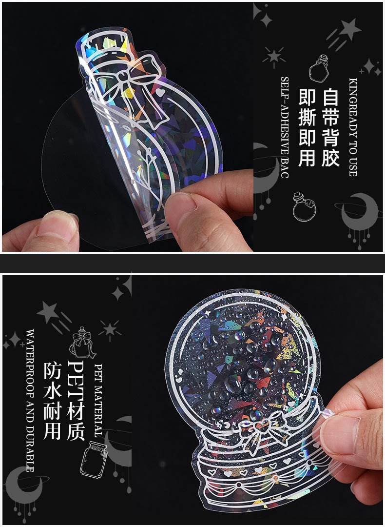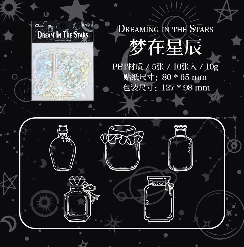 드림 스타 샌드 시리즈 병 애완 동물 레이저 스티커 종이 팩 10 방수 쉘 라이트 핸드 계정 장식 소재 스티커스토어 가기