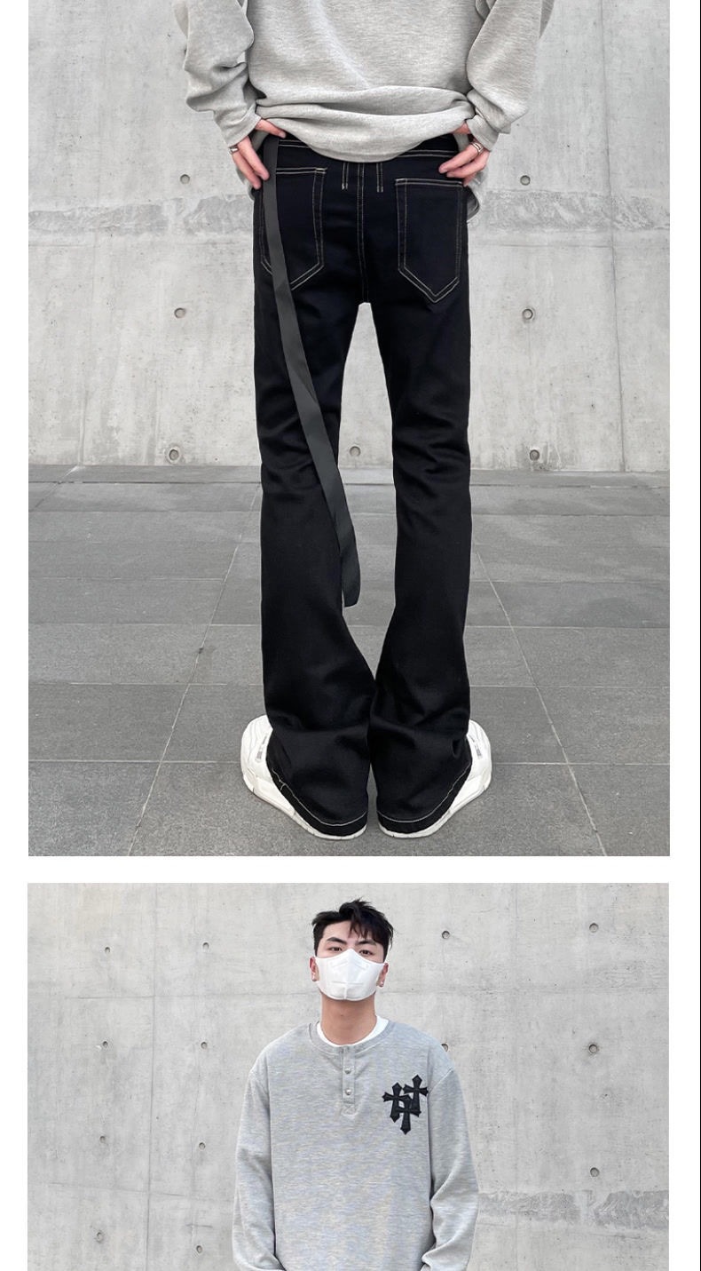 아메리칸 스타일 레트로 스트림 마이크로 플레어 팬츠 남성 하이 스트리트 패션 슬림 룩 슬림 핏 청바지 간단한 올 매치 캐주얼 바지스토어 가기