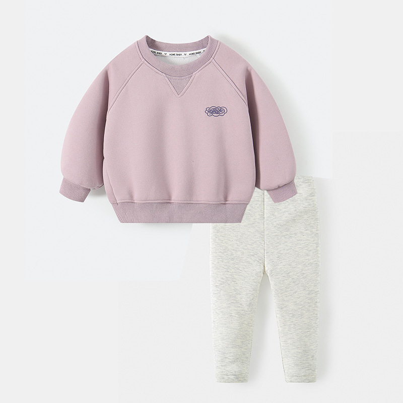 소녀 가을 겨울 기모 스웨트 셔츠 레깅스 세트 한국 스타일 타로 퍼플 스웨트 셔츠 공주 스타일 슈퍼 귀여운 유치원스토어 가기
