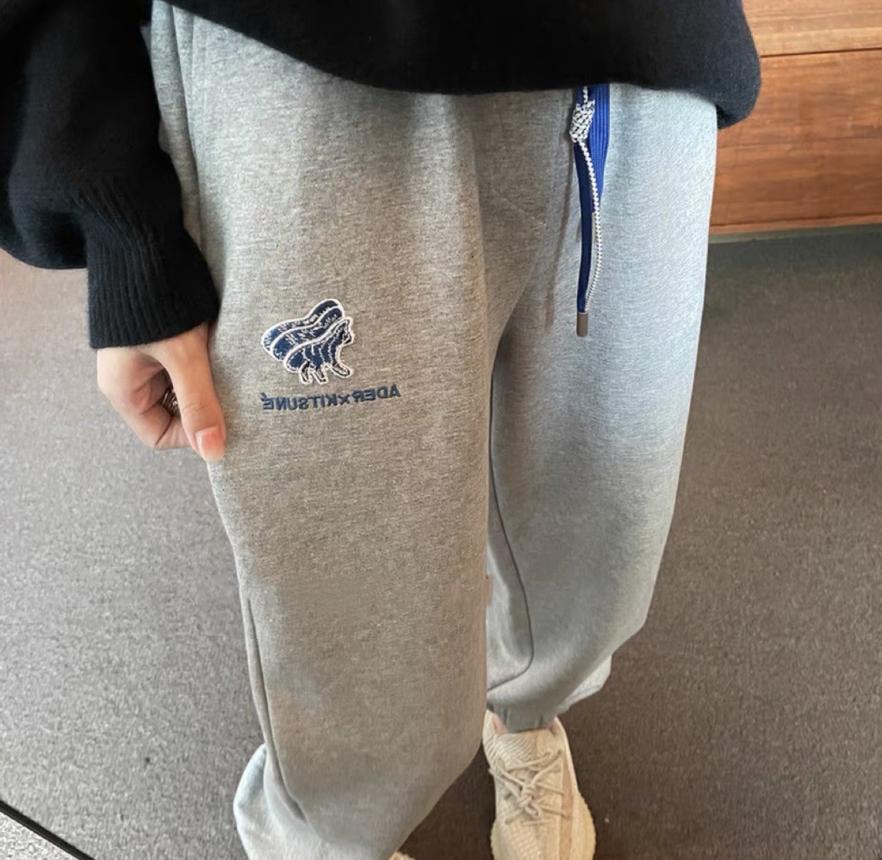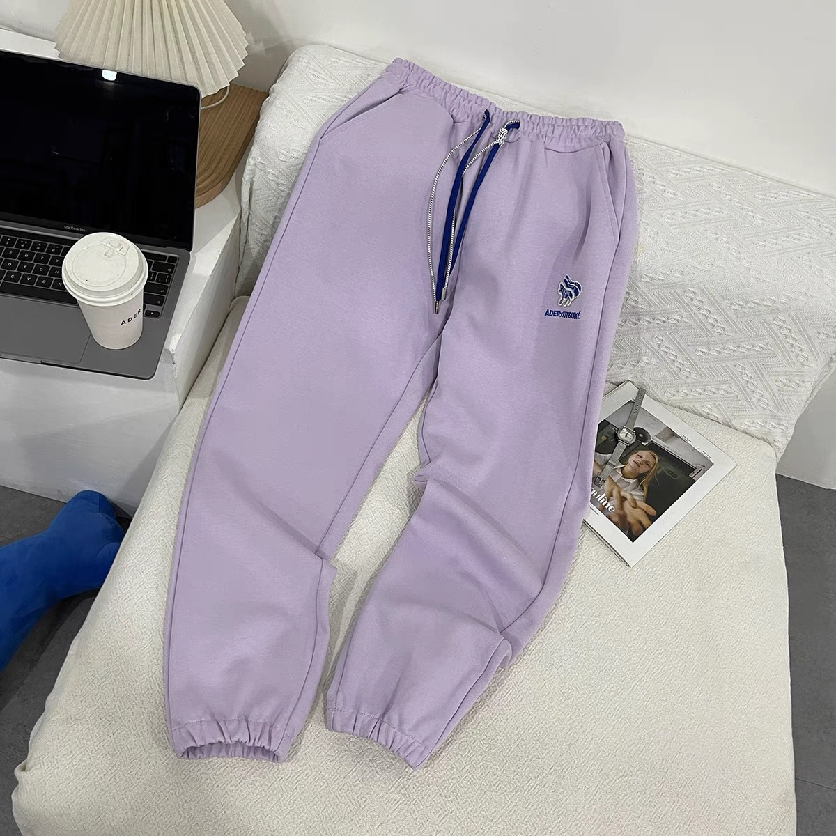 ADER 가을 슬림 폭스 자수 현악기 바지 남녀 캐주얼 바지 여성용 느슨한 올매치 스포츠 바지스토어 가기